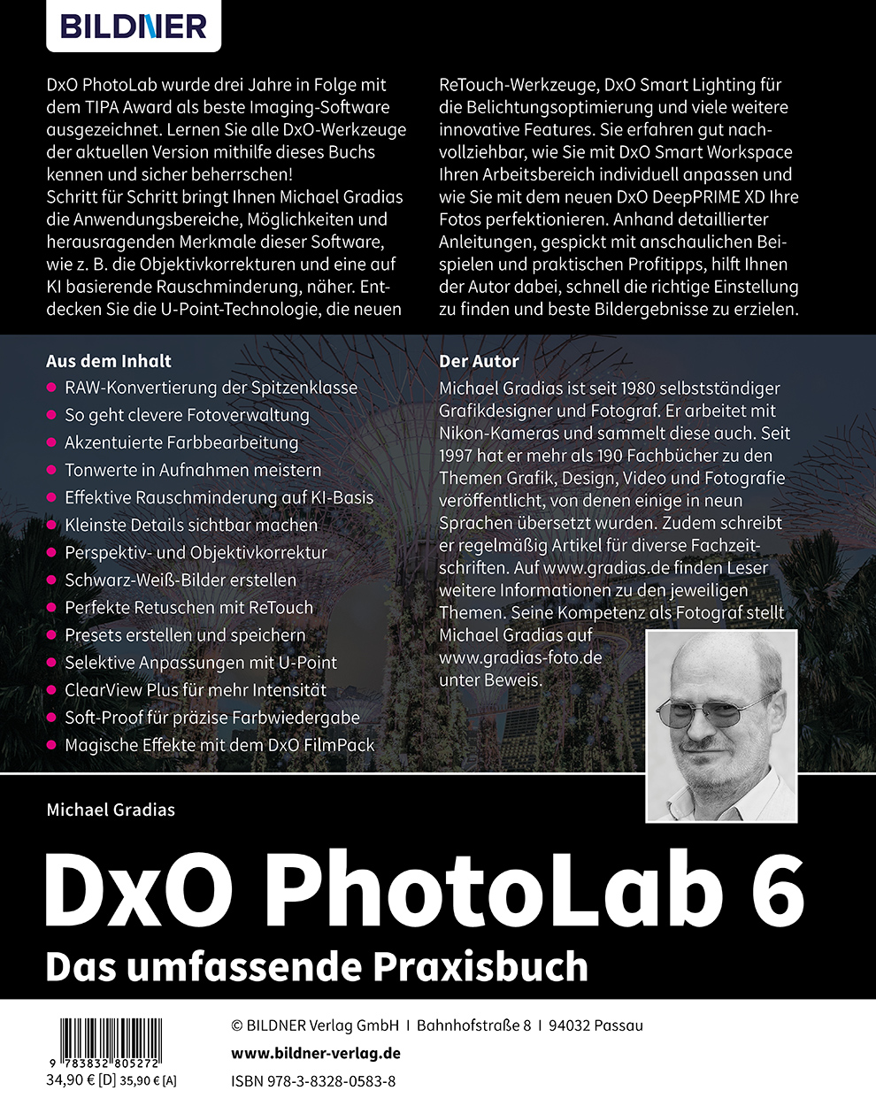 DxO PhotoLab wurde drei Jahre in Folge mit dem TIPA Award als beste Imaging-Software ausgezeichnet. Lernen Sie alle DxO-Werkzeuge der aktuellen Version mithilfe dieses Buchs kennen und sicher beherrschen! Schritt für Schritt bringt Ihnen Michael Gradias die Anwendungsbereiche, Möglichkeiten und herausragenden Merkmale dieser Software, wie z. B. die Objektivkorrekturen und eine auf KI basierende Rauschminderung, näher. Entdecken Sie die U-Point-Technologie, die neuen ReTouch-Werkzeuge, DxO Smart Lighting für die Belichtungsoptimierung und viele weitere innovative Features. Sie erfahren gut nachvollziehbar, wie Sie mit DxO Smart Workspace Ihren Arbeitsbereich individuell anpassen und wie Sie mit dem neuen DxO DeepPRIME XD Ihre Fotos perfektionieren. Anhand detaillierter Anleitungen, gespickt mit anschaulichen Beispielen und praktischen Profitipps, hilft Ihnen der Autor dabei, schnell die richtige Einstellung zu finden und beste Bildergebnisse zu erzielen.