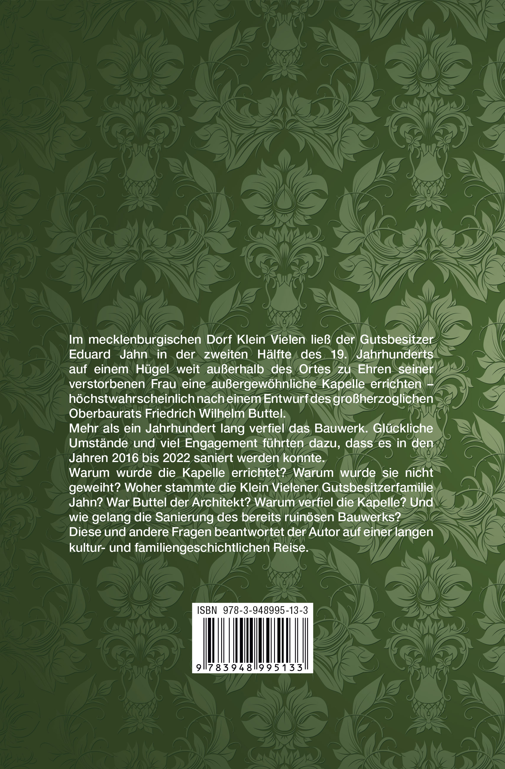 Im mecklenburgischen Dorf Klein Vielen ließ der Gutsbesitzer Eduard Jahn in der zweiten Hälfte des 19. Jahrhunderts auf einem Hügel weit außerhalb des Ortes zu Ehren seiner verstorbenen Frau eine außergewöhnliche Kapelle errichten - höchstwahrscheinlich nach einem Entwurf des großherzoglichen Oberbaurats Friedrich Wilhelm Buttel.Mehr als ein Jahrhundert lang verfiel das Bauwerk. Glückliche Umstände und viel Engagement führten dazu, dass es in den Jahren 2016 bis 2022 saniert werden konnte.Warum wurde die Kapelle errichtet? Warum wurde sie nicht geweiht? Woher stammte die KleinVielener Gutsbesitzerfamilie Jahn? War Buttel der Architekt? Warum verfiel die Kapelle? Und wiegelang die Sanierung des bereits ruinösen Bauwerks?Diese und andere Fragen beantwortet der Autor auf einer langen kultur- und familiengeschichtlichen Reise.