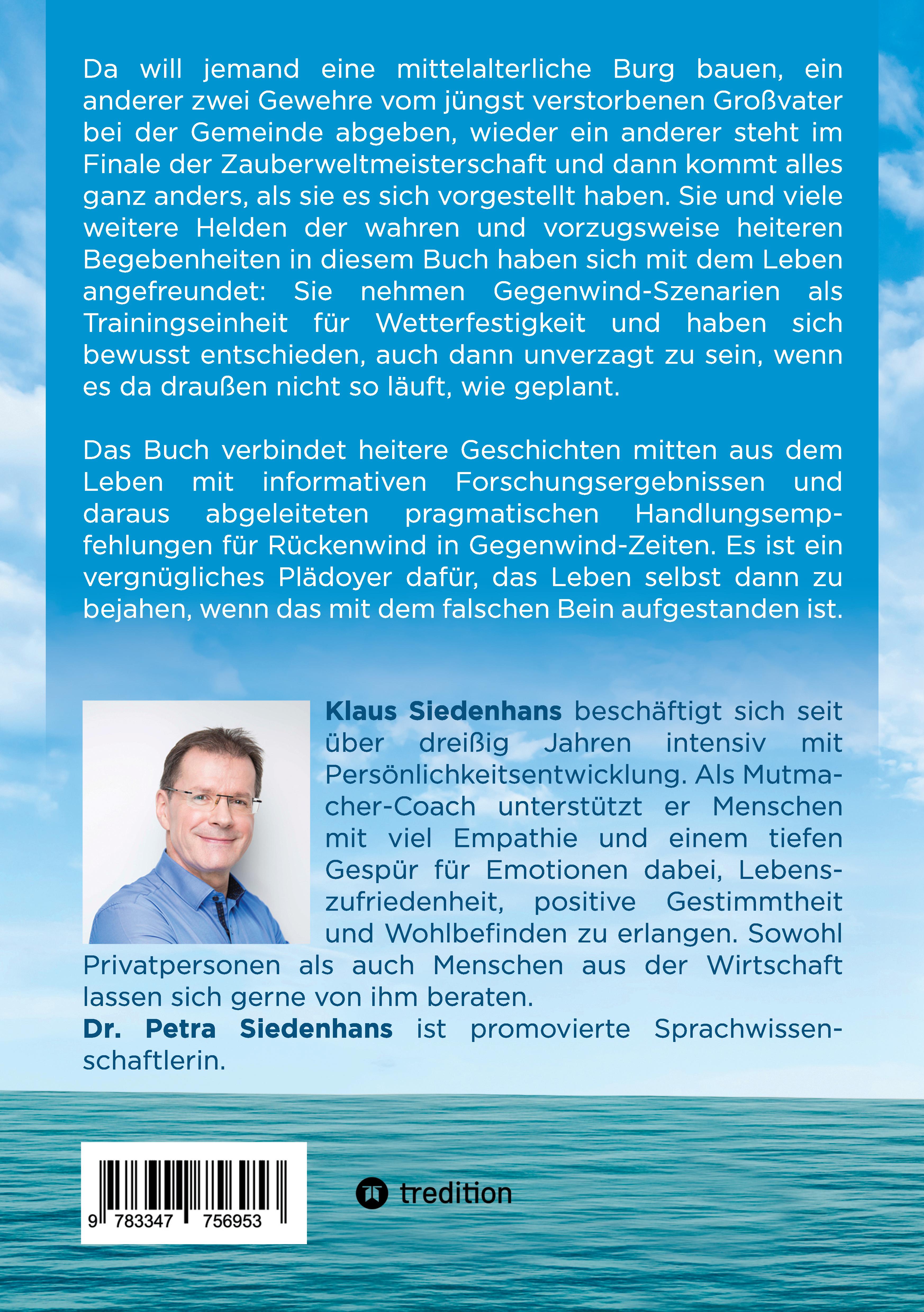 Da will jemand eine mittelalterliche Burg bauen, ein anderer zwei Gewehre vom jüngst verstorbenen Großvater bei der Gemeinde abgeben, wieder ein anderer steht im Finale der Zauberweltmeisterschaft und dann kommt alles ganz anders, als sie es sich vorgestellt haben. Sie und viele weitere Helden der wahren und vorzugsweise heiteren Begebenheiten in diesem Buch haben sich mit dem Leben angefreundet: Sie nehmen Gegenwind-Szenarien als Trainingseinheit für Wetterfestigkeit und haben sich bewusst entschieden, auch dann unverzagt zu sein, wenn es da draußen nicht so läuft, wie geplant. Das Buch verbindet heitere Geschichten mitten aus dem Leben mit informativen Forschungsergebnissen und daraus abgeleiteten pragmatischen Handlungsempfehlungen für Rückenwind in Gegenwind-Zeiten. Es ist ein vergnügliches Plädoyer dafür, das Leben selbst dann zu bejahen, wenn das mit dem falschen Bein aufgestanden ist.