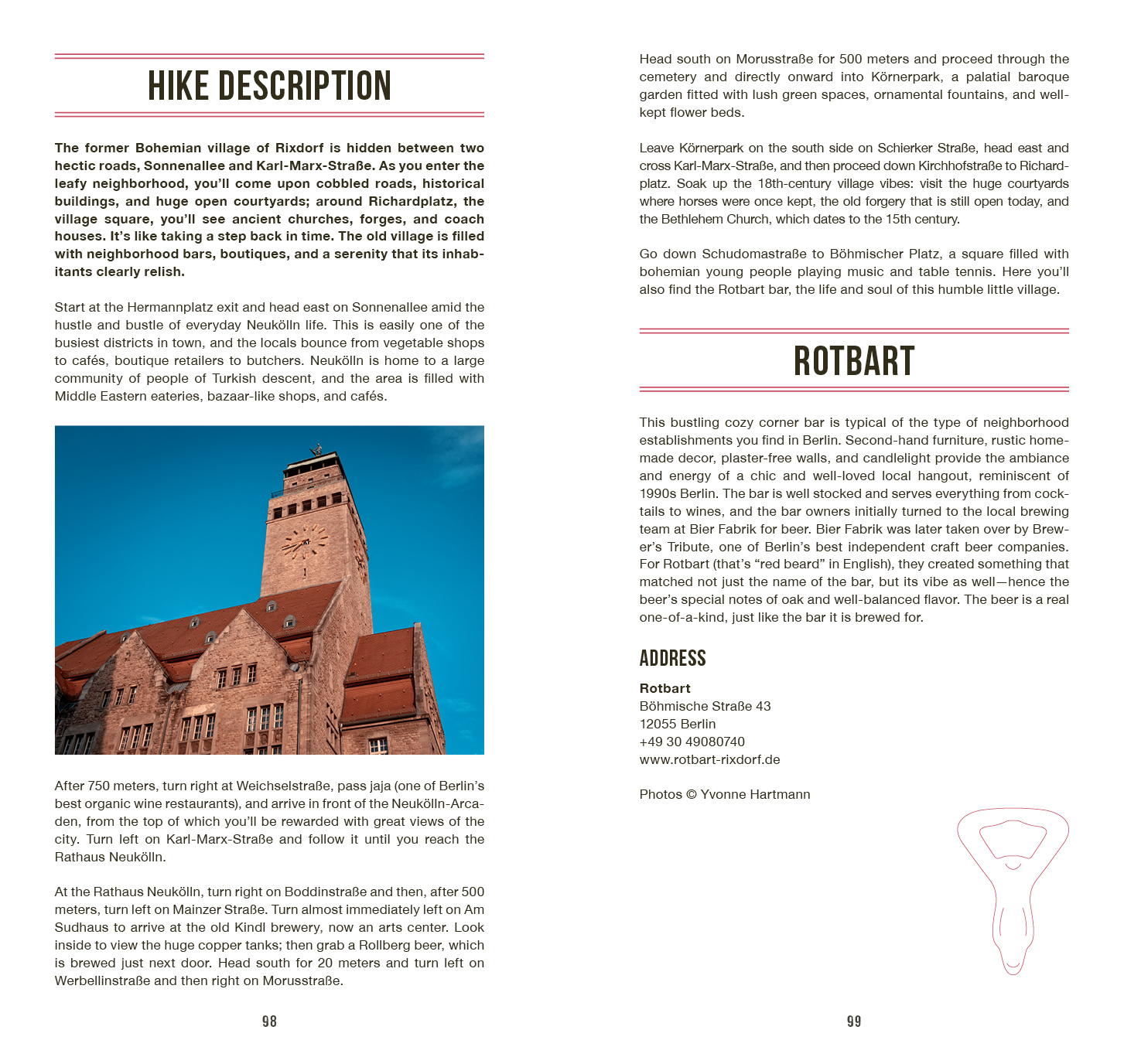 There's nothing better than topping off a hike with a refreshing beer in your hand. Berlin and Brandenburg offer a plethora of interesting breweries that make tasty beers. Thus, Beer Hiking Berlin is all about enjoying a good regional walk with a satisfying drink to boot. With maps, profiles, and other helpful information, this guide takes you to breweries beloved by locals. Thirsty hikers will find beautiful routes to tempting destinations. It is a love letter to two of the most beloved things in this world: Hiking and beer.