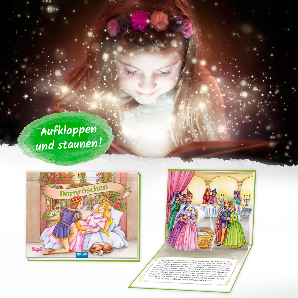 Aufklappen und staunen! Das beliebte Märchen des schlafenden Dornröschens im handlichen Pop-up-Format bringt Kinderaugen zum Leuchten! Dieses besondere Märchenbuch passt in jede Tasche und ist ein tolles Mitbringsel. Die Aufklapp-Seiten geben einen Einblick in eine zauberhafte Märchenwelt und eignen sich wunderbar zum Vorlesen.