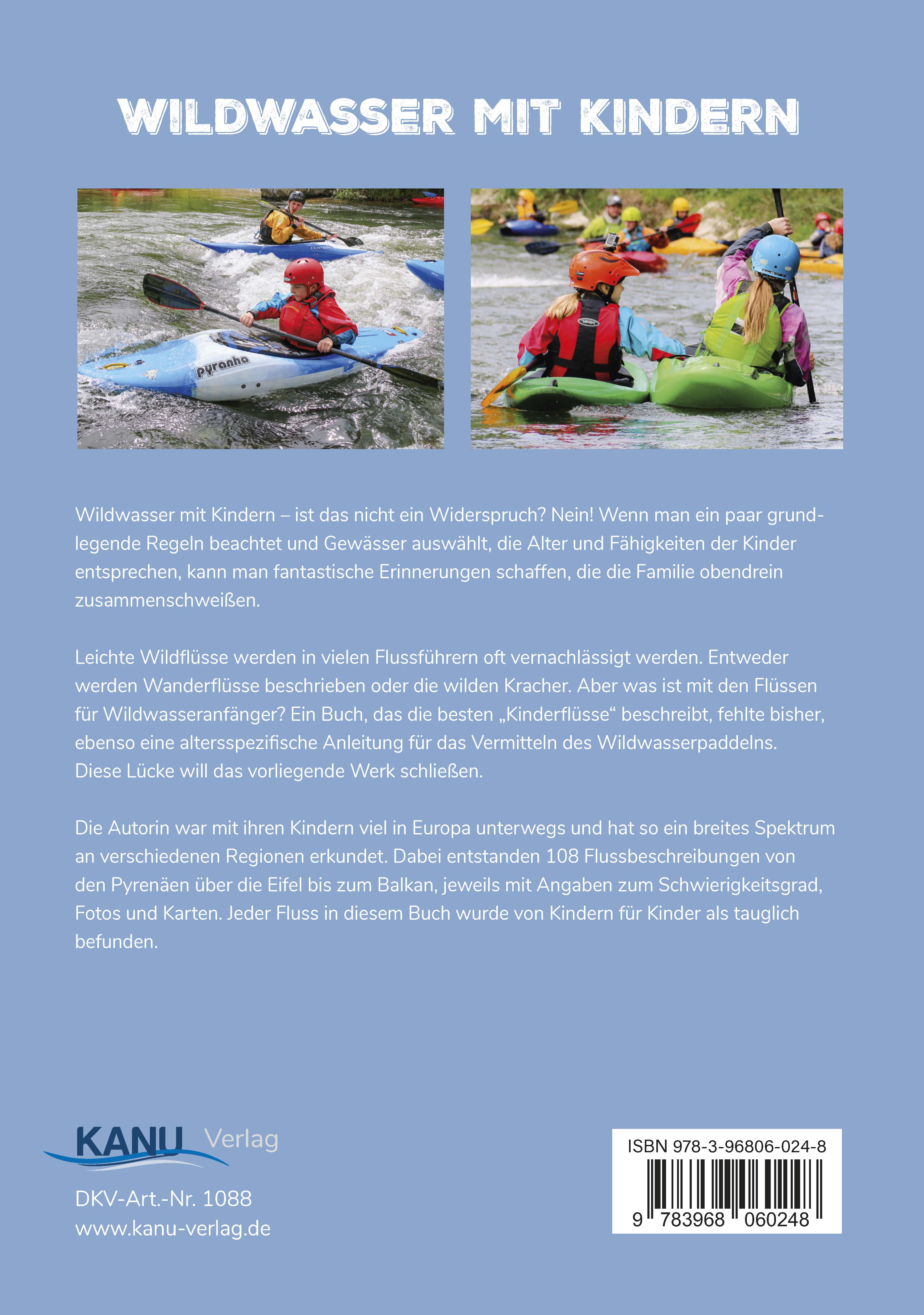 Die Autorin war mit ihren Kindern viel in Europa unterwegs und hat so ein breites Spektrum an verschiedenen Regionen erkundet. Entstanden sind 108 Flussbeschreibungen von den Pyrenäen über die Eifel bis zum Balkan mit Angabe von Schwierigkeitsgrad, Fotos und Karten. Jeder Fluss in diesem Buch wurde von Kindern als tauglich für Kinder befunden. Darüber hinaus ist es auch eine gute Lektüre für Paddler jeden Alters, die Flüsse mit leichtem Wildwasser (WW I bis WW III) suchen.