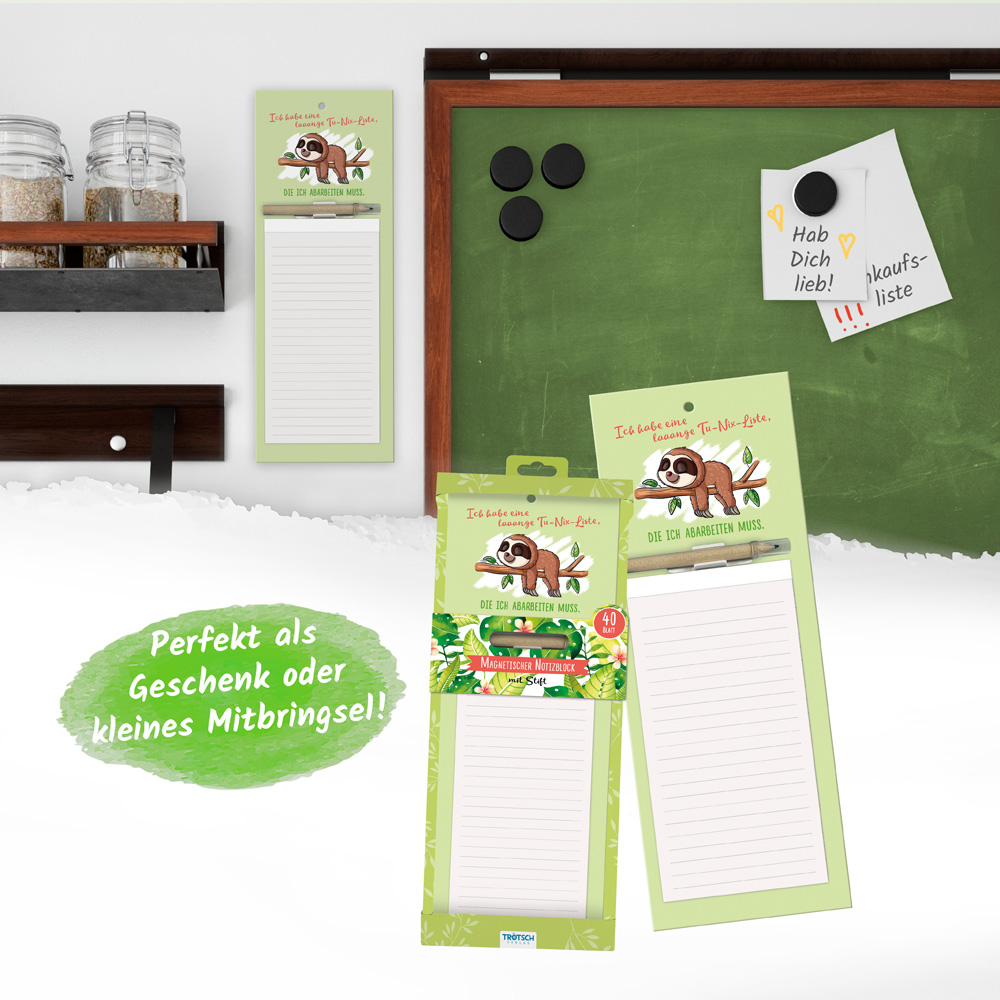 Trötsch Notizblock mit Stift und Magnet Faultier