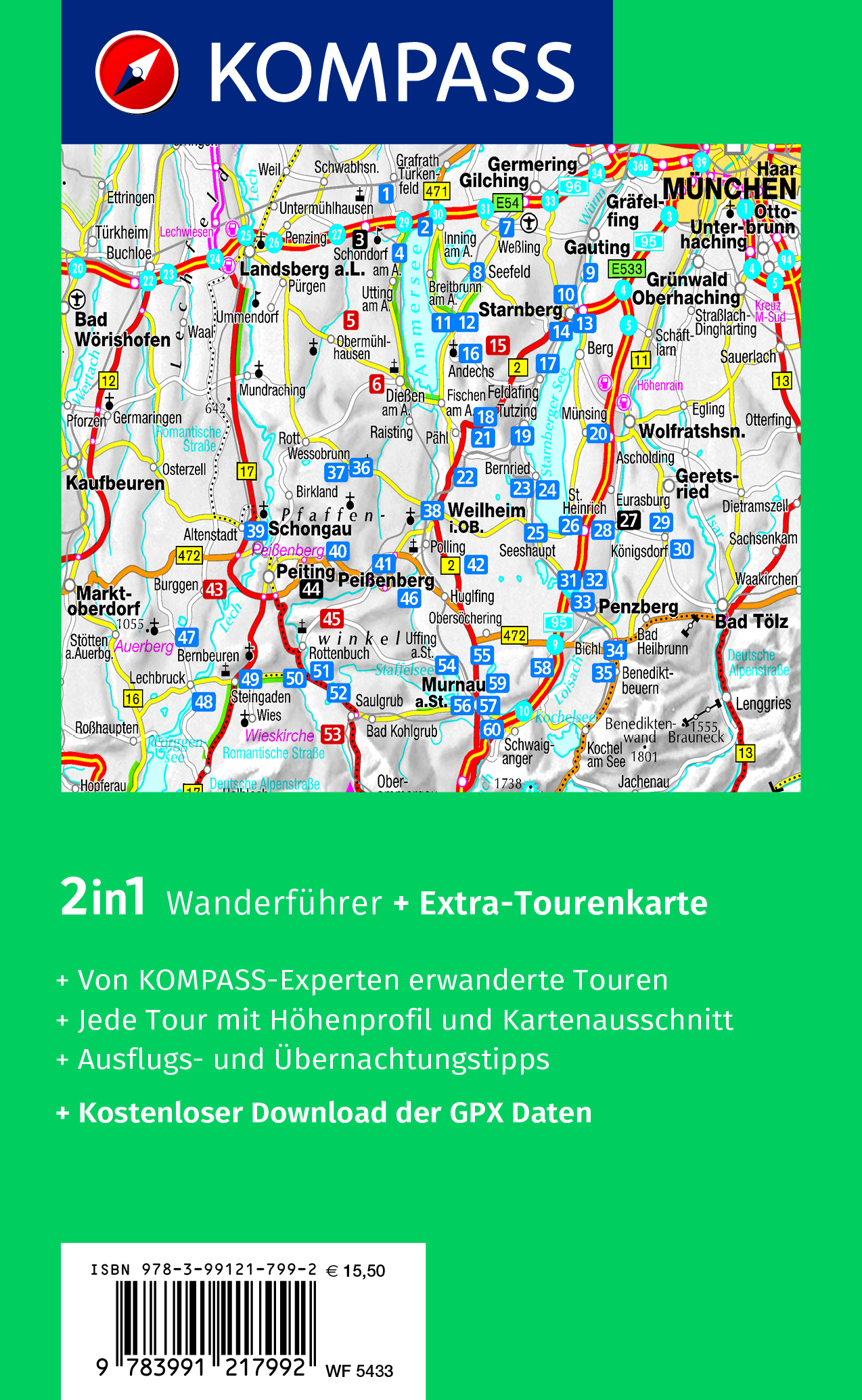 2in1 Wanderführer Pfaffenwinkel, Fünfseenland, Starnberger See, Ammersee + Extra-Tourenkarte