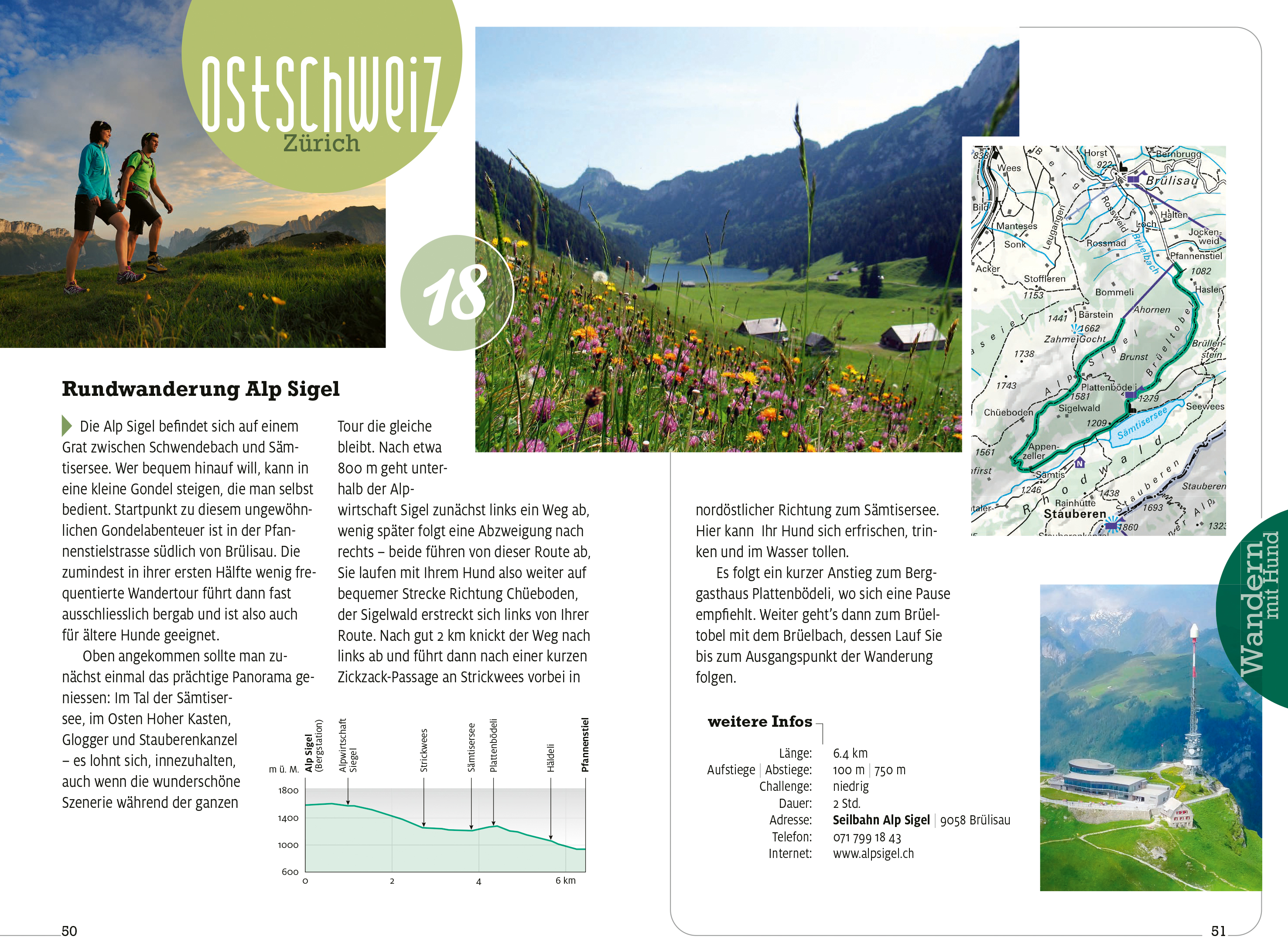 Dank der praktischen Packliste, den Tipps für die Zusatzausrüstung oder den Infos zu den wichtigen Verhaltensregeln betr. Wandern mit Hund werden Sie bestens auf Ihre Wanderung vorbereitet.