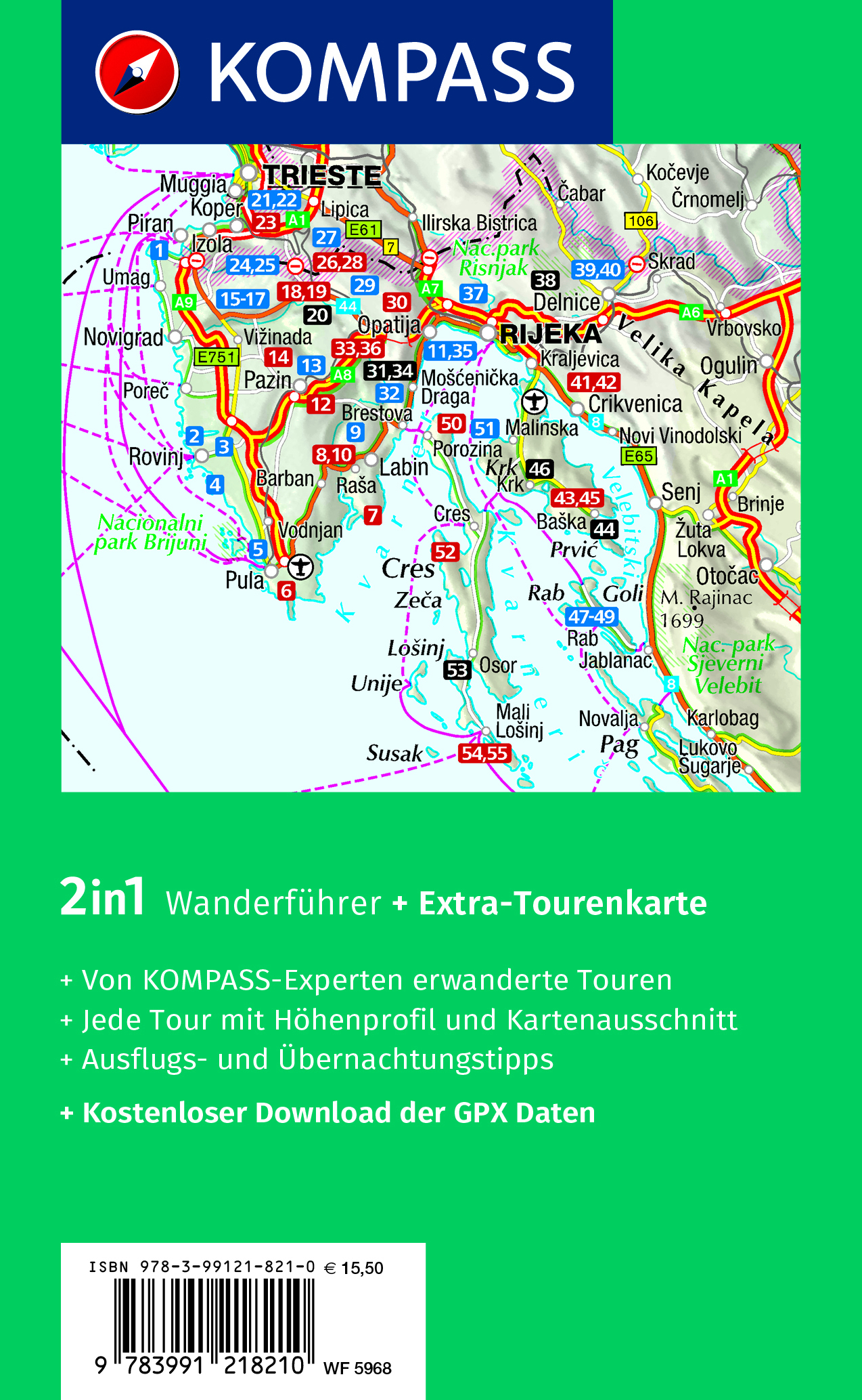 KOMPASS Wanderführer Istrien mit Kvarner-Bucht, Krk, Rab, Cres und Losinj, 55 Touren mit Extra-Tourenkarte
