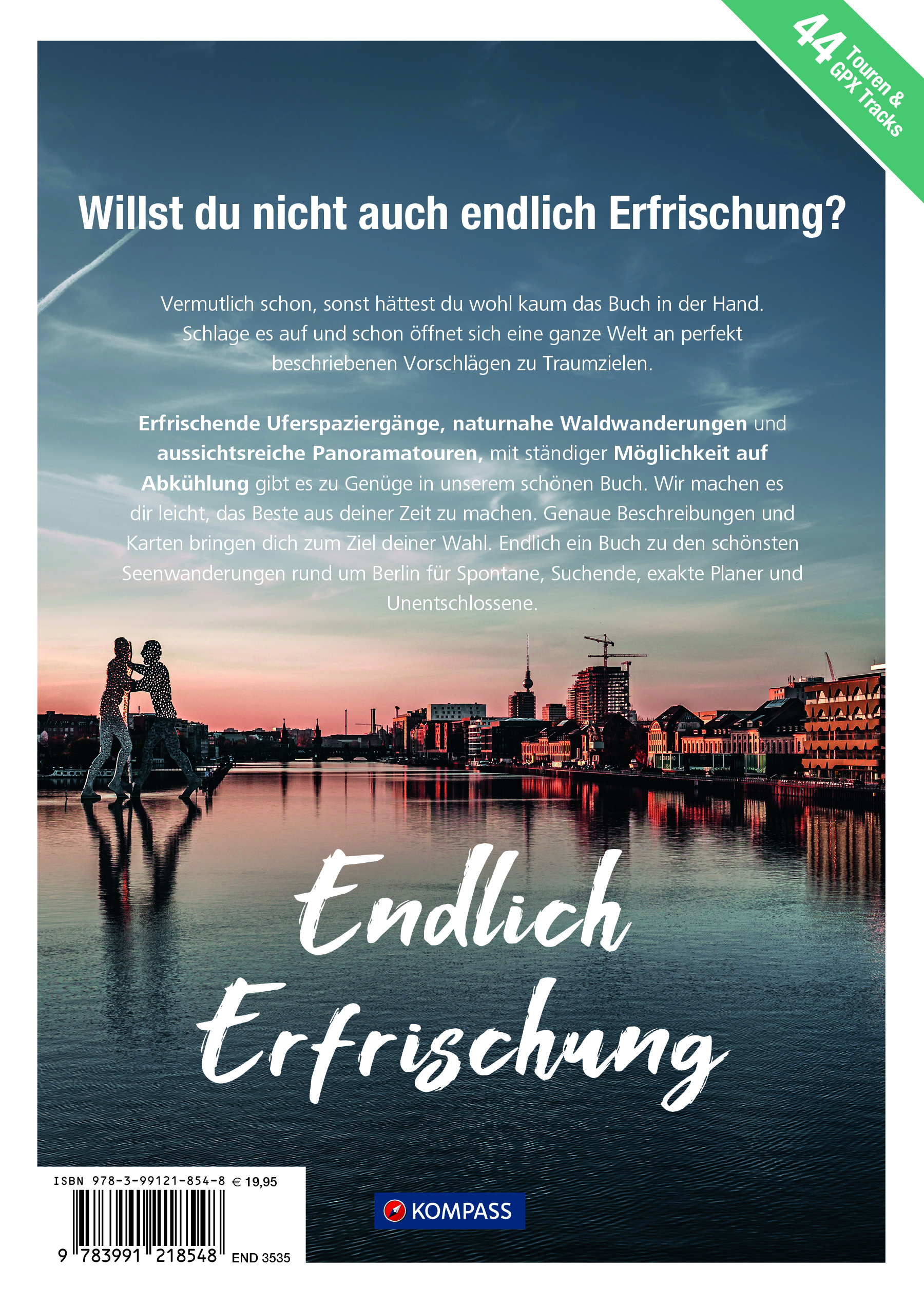 Einen heißen Tag gehabt? Du sehnst dich endlich nach Erfrischung? Mit diesem Buch steht dem nichts mehr im Weg. Rund um Berlin gibt es jede Menge Seenwanderungen die zum Baden und Erfrischen einladen. Diese zu entdecken lohnt sich! Endlich Erfrischung - Seen rund um Berlin nimmt dich mit auf 44 ausgewählte Wandertouren entlang von Seen und Gewässern rund um die Metropole. Genieße Ruhe abseits der Stadt, lasse die Seele baumeln und nutze die Tour für einen Sprung ins kühle Nass. In unserem Wanderführer stellen wir dir 44 Touren vor, die du als Berliner Naturgenießer gemacht haben musst.