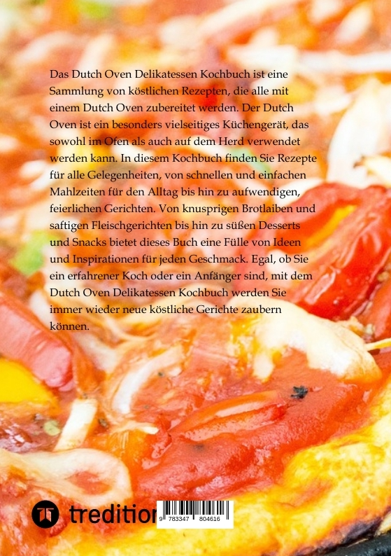 Das Dutch Oven Delikatessen Kochbuch ist eine Sammlung von köstlichen Rezepten, die alle mit einem Dutch Oven zubereitet werden. Der Dutch Oven ist ein besonders vielseitiges Küchengerät, das sowohl im Ofen als auch auf dem Herd verwendet werden kann. In diesem Kochbuch finden Sie Rezepte für alle Gelegenheiten, von schnellen und einfachen Mahlzeiten für den Alltag bis hin zu aufwendigen, feierlichen Gerichten. Von knusprigen Brotlaiben und saftigen Fleischgerichten bis hin zu süßen Desserts und Snacks bietet dieses Buch eine Fülle von Ideen und Inspirationen für jeden Geschmack. Egal, ob Sie ein erfahrener Koch oder ein Anfänger sind, mit dem Dutch Oven Delikatessen Kochbuch werden Sie immer wieder neue köstliche Gerichte zaubern können.