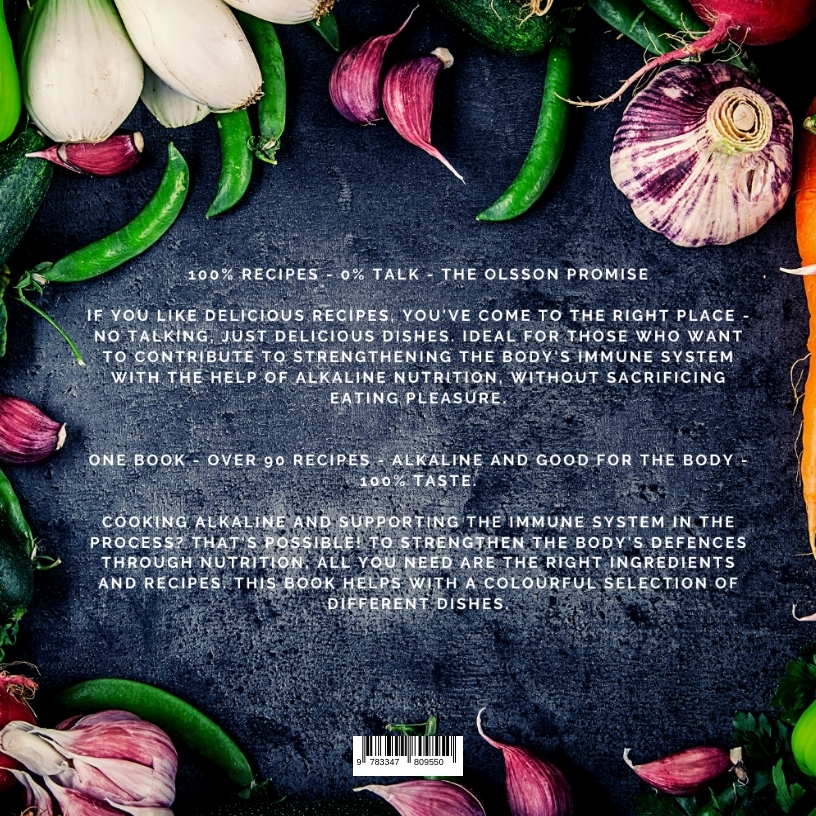 100% Recipes - 0% Talk - The Olsson PromiseIf you like delicious recipes, you've come to the right place - no talking, just delicious dishes. Ideal for those who want to contribute to strengthening the body's immune system with the help of alkaline nutrition, without sacrificing eating pleasure.One book - over 90 recipes - alkaline and good for the body - 100% taste.Cooking alkaline and supporting the immune system in the process? That's possible! To strengthen the body's defences through nutrition, all you need are the right ingredients and recipes. This book helps with a colourful selection of different dishes.The enjoyable basic cuisine:Try numerous, original recipe ideas. Conjure up delicious snacks, drinks, soups and main dishes in no time at all.How about a papaya salad for in between meals?Fancy a raspberry smoothie with almond milk?Looking for tasty main course ideas for spontaneous visitors that remain alkaline?Do you want something tasty for your packed lunch at work...?...or do you just want to relax and enjoy the freshly cooked food with your loved ones without having to accept any compromises in terms of health?Get it now and strengthen your defences in an alkaline way!On to new, alkaline dishes - This is what awaits you:Many recipes, so there is something for everyone.Healthy eating and unrestricted enjoyment no longer have to be mutually exclusive.No more ordinary snacks - snacks can also be alkaline.Even novice cooks can easily follow the majority of the recipes - without the dishes being too "simple".What are you waiting for? Get started right away! Alkaline recipes as a contribution to maintaining and strengthening the body's own defences are the ideal kitchen companion.Quick - Delicious - Alkaline