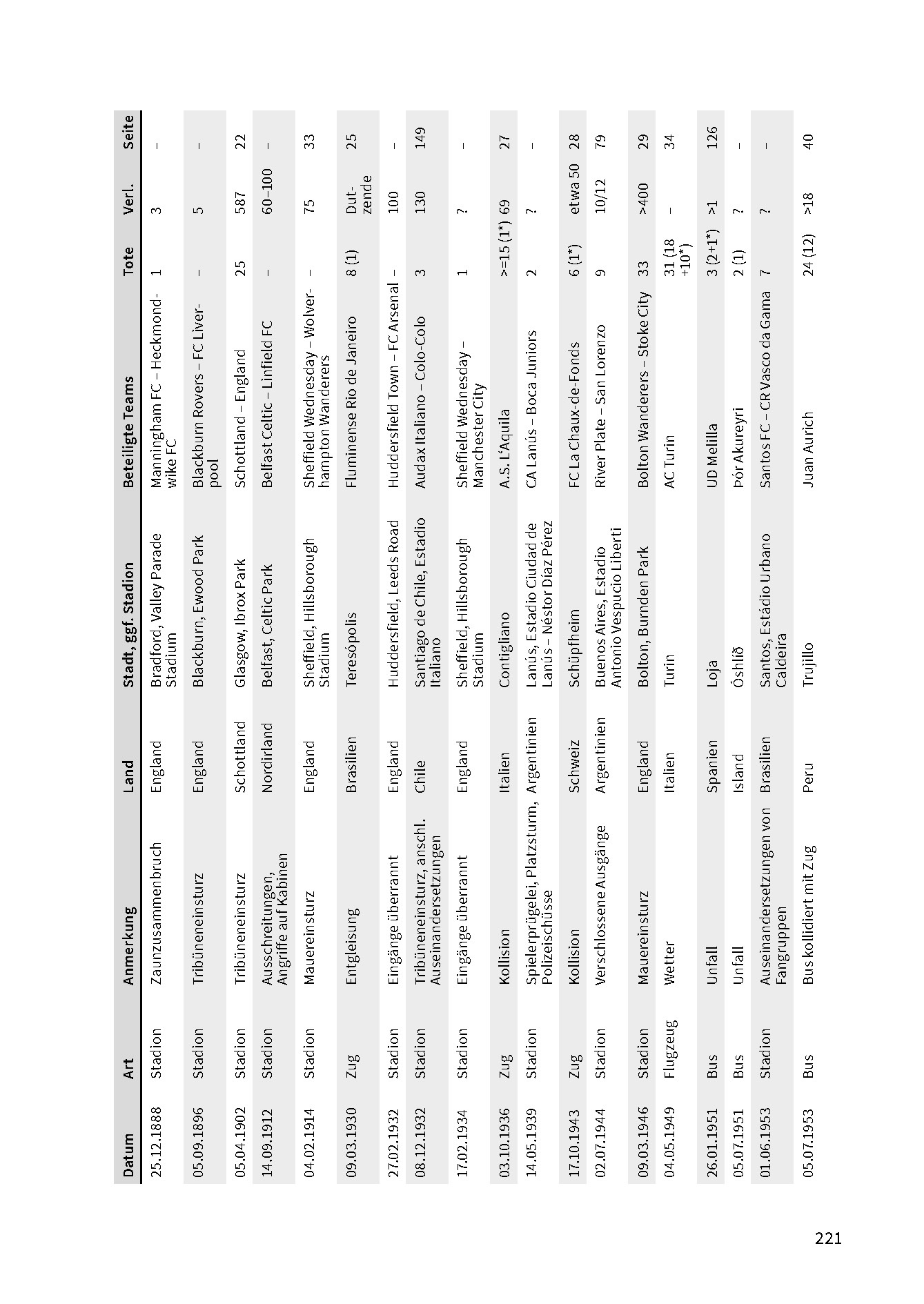| Schlagworte | Ausschreitungen • Busby Babes • Fankultur • FC Liverpool • Flugzeugabstürze • Fußball • Fußballgeschichte • Fußballstadien • Fußballtote • Heysel • Hillsborough • Krawalle • Sicherheit im Fußballstadion • Sportpolitik • Sporttragödie • Stadionbrand • Stadioneinsturz • stadionkatastrophe • Verkehrsunfälle • Zuschauer |