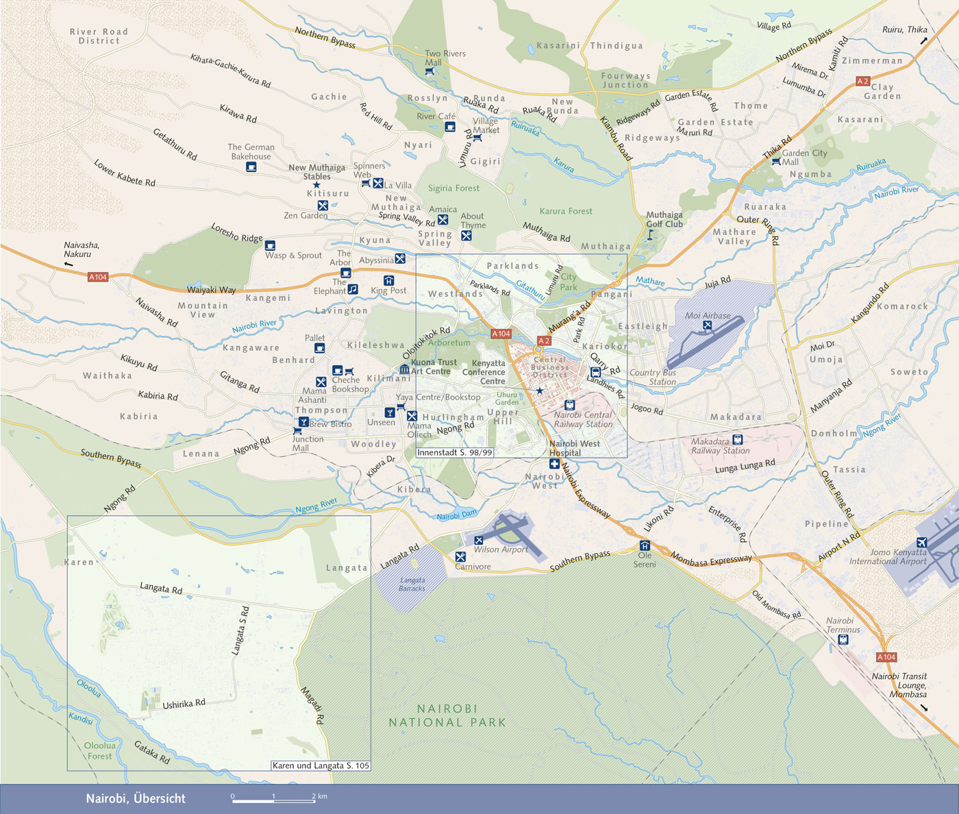 Vorwort 13Reisehöhepunkte 14Das Wichtigste in Kürze 16LAND UND LEUTE 18Kenia: Zahlen und Fakten 20Geographie und Umwelt 21Der Große Grabenbruch 21Berge und Täler 22Küste 24Klima und Reisezeit 24Vegetation und Tierwelt 27Naturschutzgebiete 29KWS-Nationalparks und Safari 34Nützliche Informationen 37Guides und Ranger 37Zelten und Bandas 37Der Kenia-Safari-Kodex 38Auf Safari 38Kartenmaterial 39Geschichte 40Paläontologie und Frühgeschichte 41Frühe Besiedlung und Migrationsbewegungen 43Geschichte der Swahili-Küste 44Die Kolonisierung Kenias 50Erster Weltkrieg 52Zweiter Weltkrieg 52Unabhängigkeit 53Die Republik Kenia 54Politik und Wirtschaft 55Bevölkerung 55Staatsform 58Innenpolitische Konflikte 58Wirtschaft heute 59Landwirtschaft 59Energiesektor 61Tourismus 62Jua Kali - der informelle Sektor 63Religion und Gesellschaft 64Christliche Kirchen und Glaubensrichtungen 65Ethnische Religionen 66Islam 67Hinduismus und andere indische Religionen 68Die Ethnien Kenias 69Die Sprachen Kenias 74Kultur und Kunst 76Literatur 76Musik und Tanz 78Festivalkalender 81Sport 85Speisen und Getränke 88Swahili-Küche, Indische Küche 89Getränke 90NAIROBI UND UMGEBUNG 92Nairobi 94Geschichte der Stadt 95Orientierung 100Sicherheit 101Stadtzentrum 101Langata und Karen 104Kunstgalerien und Kulturzentren 108Stadtbesichtigungs-Tipps 109Nairobi-Informationen 112Allgemeine Informationen 112An- und Abreise 113Unterwegs in Nairobi 116Unterkünfte 118Gastronomie 119Sehenswürdigkeiten 124Nairobi am Abend 125Nairobi bei Nacht 126Veranstaltungen und Feste 127Einkaufen 128Für Kinder, Sport und Freizeit 130Ärztliche Hilfe 131Sehenswertes in der Umgebung von Nairobi 132Nairobi National Park 132Kaffeetouren 135The Forest 135RIFT VALLEY 136Unterwegs im Ostafrikanischen Grabenbruch 138Naivasha und Lake Naivasha 140Lake Naivasha 140Kilimandege Sanctuary und Kenya Bird of Prey Trust 144Elsamere Conservation Centre 145Hell's Gate National Park 150Der Naturraum Hell's Gate 151Tierwelt im Nationalpark 152Vegetation und Klima 152Unterwegs im Nationalpark 152Mount Longonot National Park 155Lake Elementaita 157Nakuru 160Lake Nakuru National Park 162Tierwelt im Nationalpark 162Vegetation und Klima 164Unterwegs im Nationalpark 164Lake Baringo 166Tierwelt 166Insel Ol Kokwe 167Orte am Lake Baringo 167Tagesausflug zum Lake Bogoria 167DAS ZENTRALE HOCHLAND 170Überblick 172Nyeri 172Aberdare National Park 175Tierwelt 178Vegetation 179Klima 181Im Park unterwegs 181Naro Moru 185Nanyuki 186Chogoria 190Mount Kenya National Park 191Der Naturraum Mount Kenya 192Tierwelt im Nationalpark 193Vegetation 194Klima 195Trekking im Nationalpark 195Die Umgebung vom Mount Kenya 200Olepangi Farm 200Ragati Conservancy 200Meru 202Meru National Park 204Tierwelt im Nationalpark 204Vegetation, Klima 206Unterwegs im Nationalpark 207Nyahururu 210Laikipia 211Ol Pejeta Conservancy 212Mugie Conservancy 216El Karama Conservancy 219DER NORDEN 222Der Norden Kenias 225Sicherheitslage 226Isiolo 227Samburu und Buffalo Springs National Reserves 229Tierwelt 229Vegetation 232Klima 232Unterwegs in den Nationalreservaten 232Umoja 233Reteti Elephant Sanctuary 236Marsabit 238Marsabit National Park 241Die Tierwelt 242Vegetation 243Klima 244Im Park unterwegs 244Über Laisamis zu