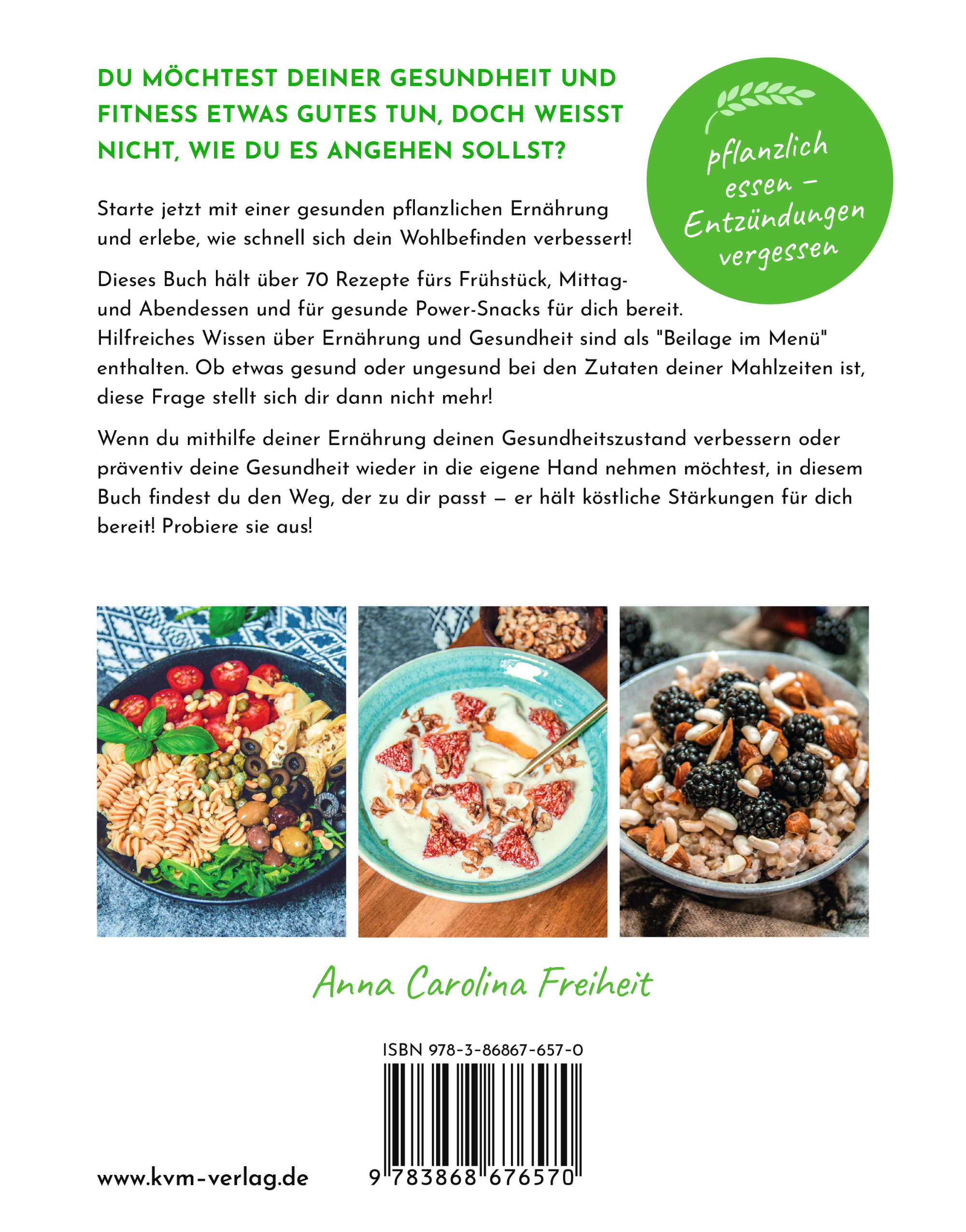 Sie möchten Ihrer Gesundheit und Fitness etwas Gutes tun, doch wissen nicht, wie Sie es angehen sollen? Starten Sie jetzt mit einer gesunden pflanzlichen Ernährung und erleben Sie, wie schnell sich Ihr Wohlbefinden verbessert!Dieses Buch hält über 70 Rezepte fürs Frühstück, Mittag- und Abendessen und für gesunde Power-Snacks bereit. Hilfreiches Wissen über Ernährung und Gesundheit sind als "Beilage im Menü" enthalten. Ob etwas gesund oder ungesund bei den Zutaten Ihrer Mahlzeiten ist, diese Frage stellt sich dann nicht mehr!Wenn Sie mithilfe Ihrer Ernährung Ihren Gesundheitszustand verbessern oder präventiv Ihre Gesundheit in die eigene Hand nehmen möchten, finden Sie in diesem Buch den Weg, der zu Ihnen passt - es hält köstliche Stärkungen für bereit! Probieren Sie sie aus!