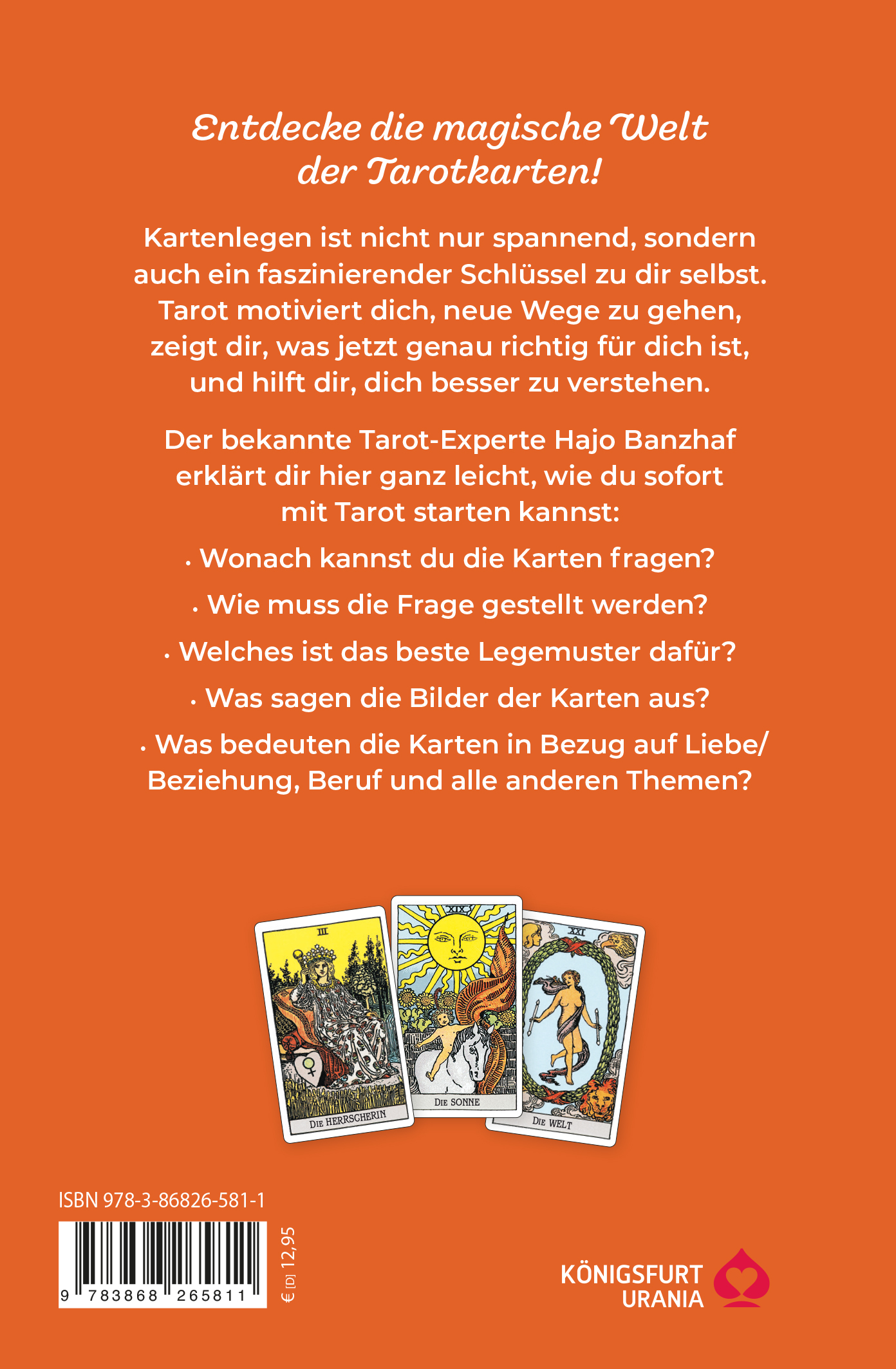 Entdecke die magische Welt der Tarotkarten! Kartenlegen ist nicht nur spannend, sondern auch ein faszinierender Schlüssel zu dir selbst. Tarot motiviert dich, neue Wege zu gehen, zeigt dir, was jetzt genau richtig für dich ist, und hilft dir, dich besser zu verstehen. Der bekannte Tarot-Experte Hajo Banzhaf erklärt dir hier ganz leicht, wie du sofort mit Tarot starten kannst: Wonach kannst du die Karten fragen?Wie muss die Frage gestellt werden?Welches ist das beste Legemuster dafür?Was sagen die Bilder der Karten aus?Was bedeuten die Karten in Bezug auf Liebe/Beziehung, Beruf und alle anderen Themen?