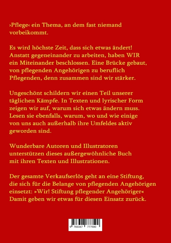Brigitte Bührlen - "WIR! Stiftung pflegender Angehöriger" - Auszüge aus der Präambel der Satzung: "20 Jahre lang habe ich meine an Demenz erkrankte Mutter begleitet, die Aspekte der häuslicher Versorgung und anschließenden Heimpflege wahrgenommen und durchlebt. Angesichts der persönlichen Betroffenheit, die man bei der Pflege Angehöriger oder von Menschen aus seinem näheren Umfeld empfindet, der großen Leistung, die in psychischer, physischer, mentaler und finanzieller Hinsicht erbracht wird, angesichts der Gesamtbelastung, denen Familien oft ausgesetzt sind, bin ich zu der bestürzenden Erkenntnis gekommen: Pflegende Angehörige stehen auf verlorenem Posten. Sie haben keine Stimme, keinen Rückhalt und keine starke Lobby in der Gesellschaft, sie haben im Verhältnis zu ihrer Leistung, die sie in der und für die Gesellschaft erbringen zu wenig Anerkennung und Rechte. Dies erstaunt umso mehr als die demographische Entwicklung in unserem Land viele Menschen vor die Entscheidung stellt: Wie sollen meine Eltern und Großeltern, versorgt werden? Aber auch pflegeabhängige Kinder und andere nahestehende Menschen jeglichen Alters werden betreut. Können, dürfen, sollen sie zuhause bleiben oder zwingen die Umstände zu einer Fremdbetreuung. Wer hilft in finanzieller, juristischer, mentaler Not? Wer hilft, wenn die Heimversorgung inakzeptable Zustände zutage fördert? Trotz zahlreicher Kontakte zu vielen Organisationen aus verschiedenen Bereichen fühlte ich mich in meinem Anliegen nicht ernst genommen, gewürdigt, gefördert und angemessen unterstützt. Gesellschaft und Politik schweigen ein unübersehbares Problem tot: Wir habe viele pflegebedürftige Mitmenschen jeglichen Alters und wissen nicht, wie wir sie menschenwürdig versorgen sollen......." "Ich gründe diese Stiftung, weil es mir ein großes Anliegen ist, dass pflegenden Angehörigen entsprechend ihrer wichtigen familiären, sozialen und gesellschaftspolitischen Funktion Mitwirkungs-, Mitbestimmungs- sowie Kontrollmöglichkeiten und -rechte insbesondere auch über die Verwendung privater Gelder in der Pflege eingeräumt werden. Sie müssen unabänderlich die Möglichkeit haben, dass ihre Leistungen, insbesondere die hohe, ganzheitliche Pflegekompetenz, Liebe und Fürsorge sowie der finanzielle Einsatz als wirtschaftlicher Beitrag für Familie und Gesellschaft anerkannt werden.........." Quelle: Homepage der von Brigitte Bührlen gegründeten Stiftung. Autorin von "WIR! Manifest für eine menschliche Pflege."