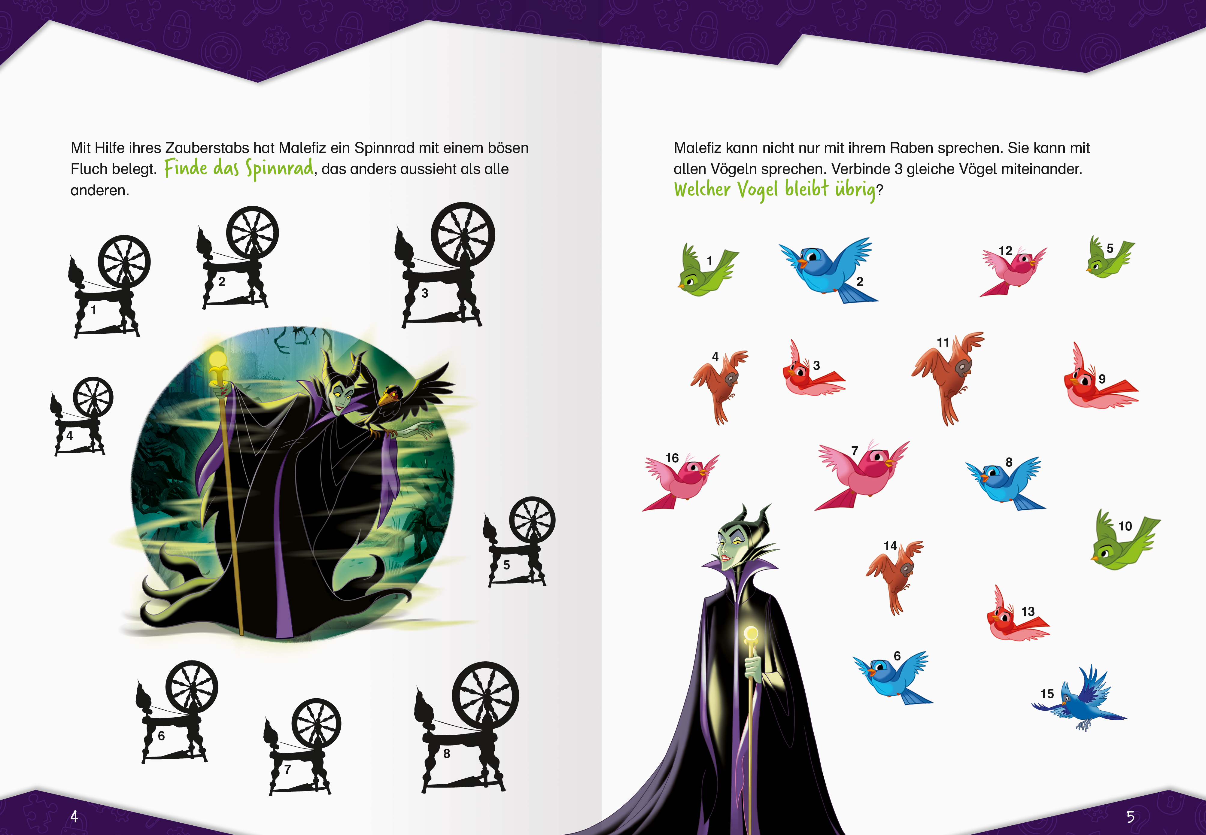 Jede Menge knifflige Denkspiele, spannende Rätsel und verzwickte Knobelaufgaben warten darauf, von schlauen Köpfen ab 9 Jahren gelöst zu werden. Was gibt es Besseres gegen Langeweile, als eine spannende Rätsel-Challenge gegen die Disney-Villain Maleficent?