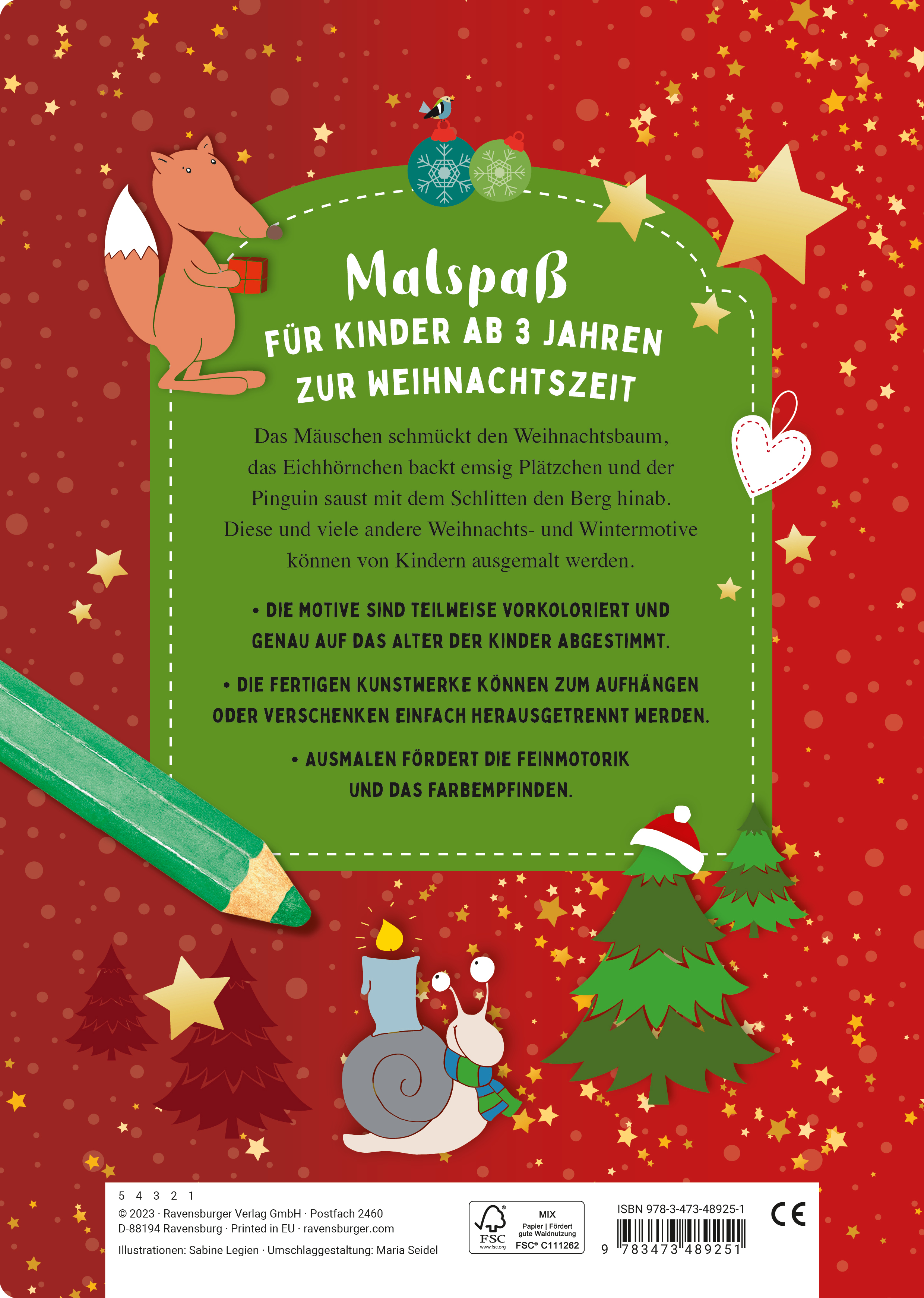 Weihnachten naht, das Wetter läd nicht zum Draußenspielen ein, da kommt dieses liebevoll illustrierte Malbuch für Kinder ab 3 gerade recht.