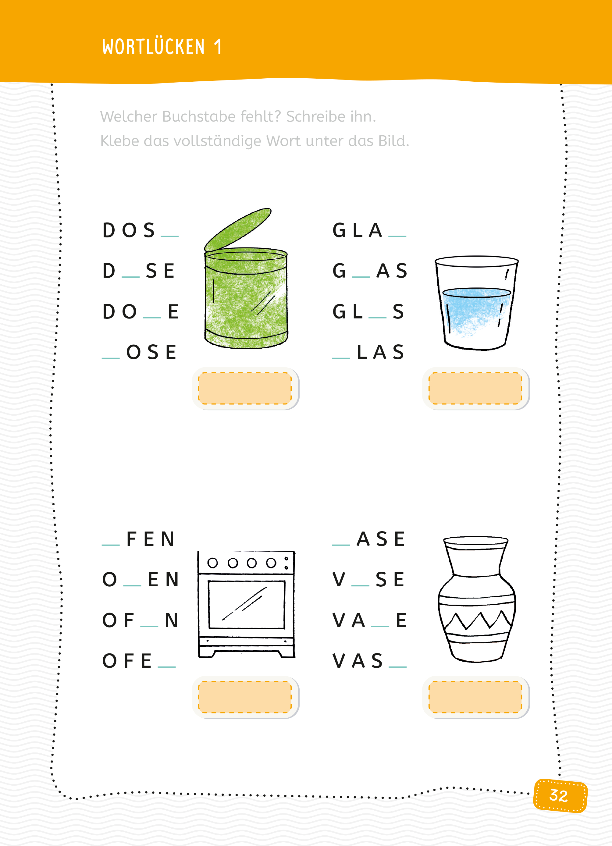 Und das Tolle: Beim Lösen der Aufgaben darf nicht nur ausgemalt, verbunden und geschrieben, sondern mit vielen farbigen Stickern auch geklebt werden. Das bringt schnelle Lernerfolge und motiviert.
