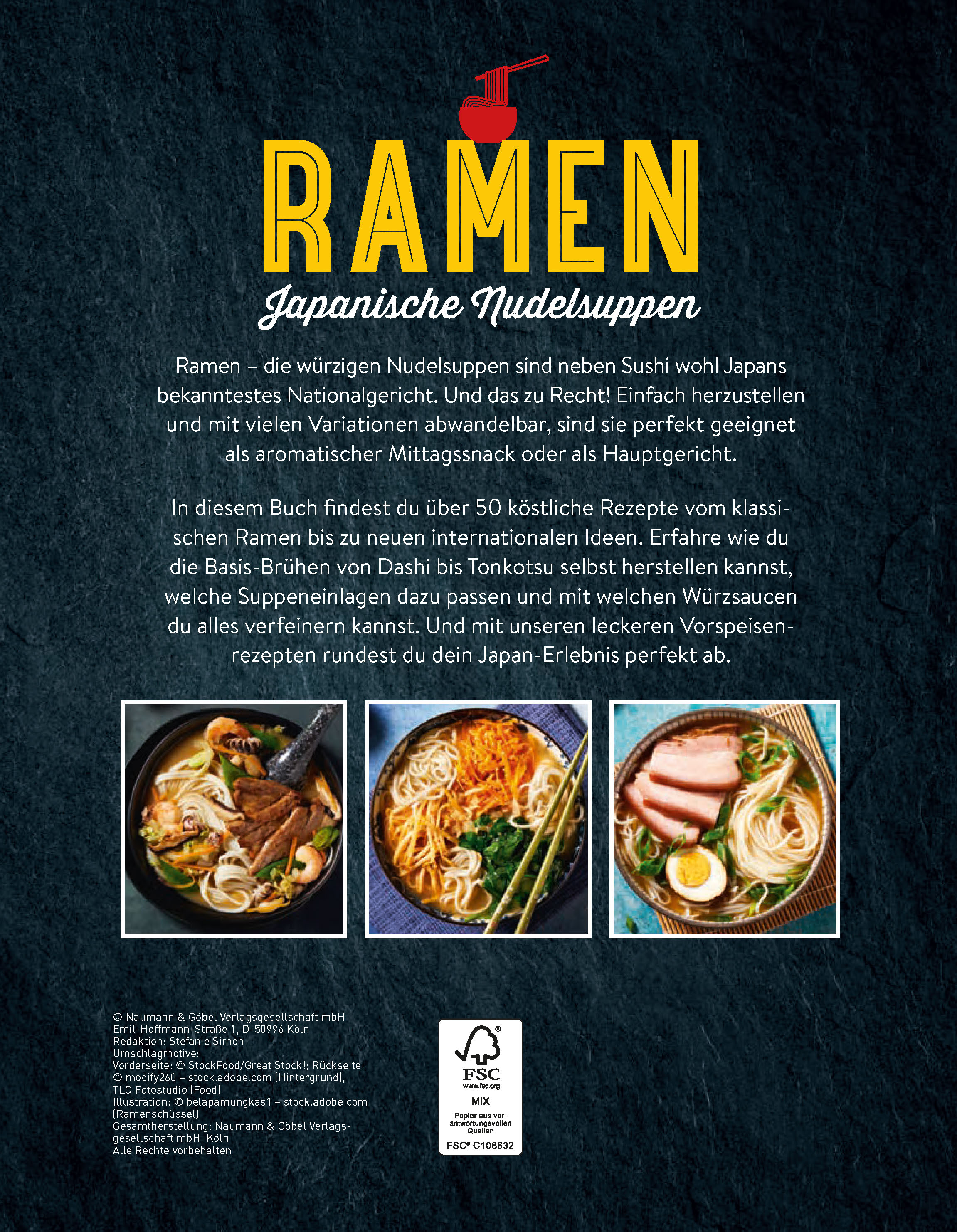 Ramen die würzigen Nudelsuppen sind neben Sushi wohl Japans bekanntestes Nationalgericht. Und das zu Recht! Einfach herzustellen und mit vielen Variationen abwandelbar, sind sie perfekt geeignet als aromatischer Mittagssnack oder als Hauptgericht. In diesem Buch findest du über 50 köstliche Rezepte vom klassischen Ramen bis zu neuen internationalen Ideen. Erfahre wie du die Basis-Brühen von Dashi bis Tonkotsu selbst herstellen kannst, welche Suppeneinlagen dazu passen und mit welchen Würzsaucen du alles verfeinern kannst. Und mit unseren leckeren Vorspeisenrezepten rundest du dein Japan-Erlebnis perfekt ab. Die japanische Küche bietet soviel mehr als nur Sushi.