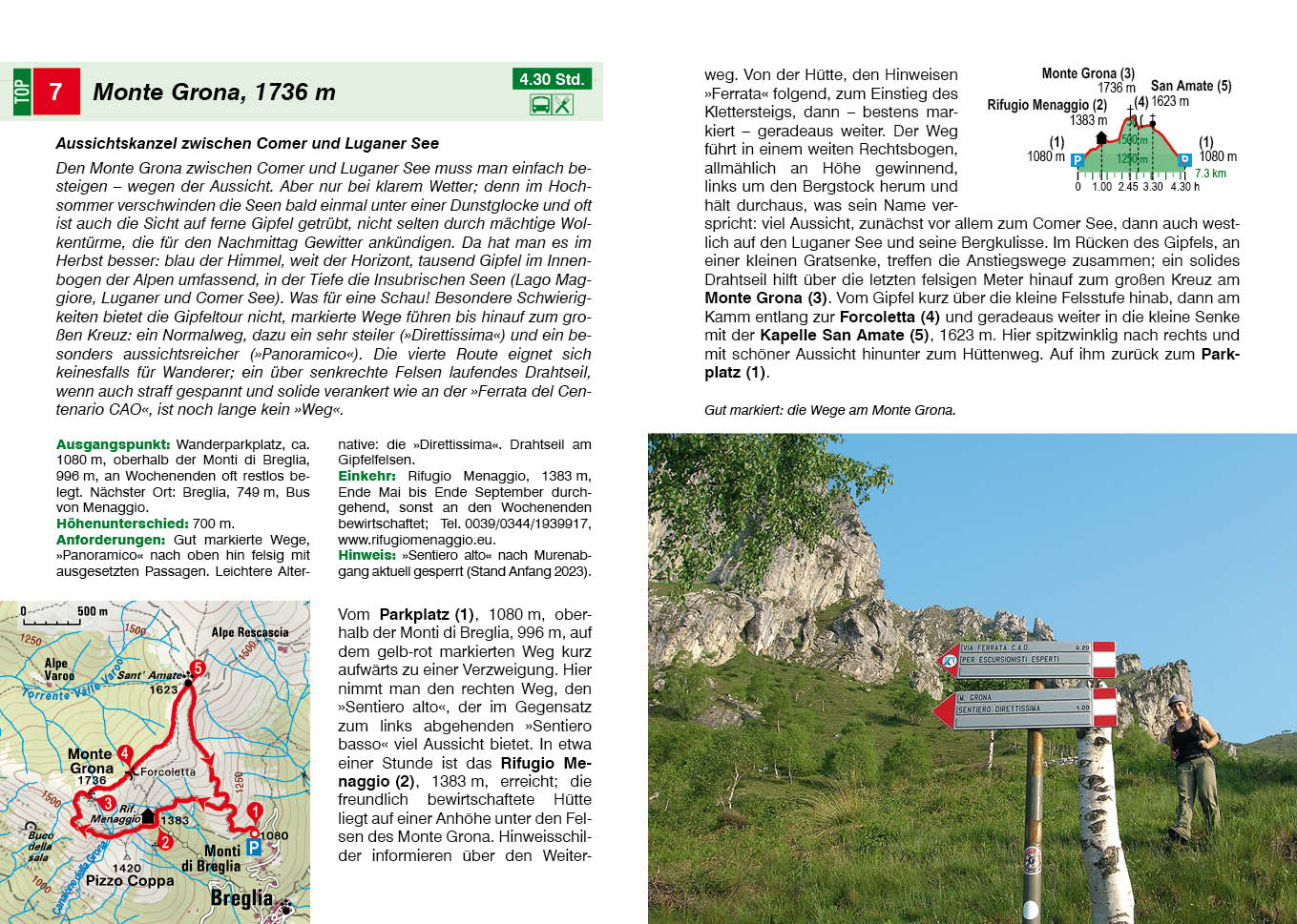 Der erfahrene Bergbuchautor Eugen E. Hüsler hat mit viel Sachkenntnis und Liebe zum Gebiet eine abwechslungsreiche Tourenauswahl zusammengestellt. Darunter finden sich leichte, entspannende Spaziergänge am Ufer des Lago di Como genauso wie alpin anspruchsvolle, teils mehrtägige Touren in den Hochregionen des Gebirges. Alle Tagestouren in diesem Wanderführer sind präzise beschrieben und mit Kartenausschnitten, aussagekräftigen Höhenprofilen sowie ansprechenden Fotos versehen. Auf der Internetseite des Rother Bergverlags stehen GPS-Tracks zum Download bereit.