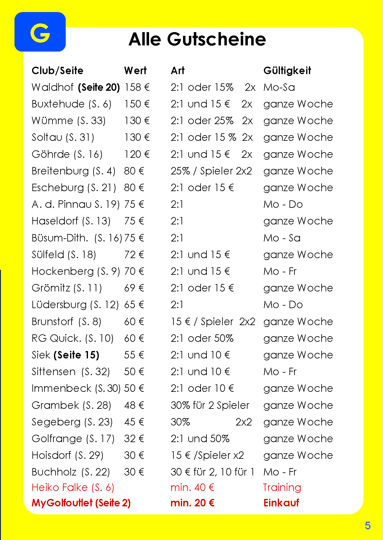 Die einzigartige Kombination aus Gutscheinbuch und Golfführer geht in die zwanzigste Runde. Zwei neue Greenfee-Gutscheine im Golfclub an der Pinnau und dem Golfclub Schloss Lüdersburg haben wir für Sie eingesammelt. Wie immer komplett unverbindlich und übertragbar. Insgesamt steigt das Gutscheinvolumen auf über 1800 Euro.