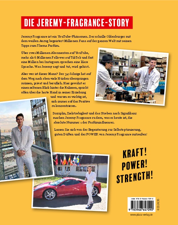 Das neue und einzige Buch der weltweiten Nummer eins der Parfum-Influencer: Jeremy Fragrance ist ein YouTube-Phänomen. Der schrille Oldenburger mit dem weißen Anzug begeistert Millionen Fans auf der ganzen Welt mit seinen Tipps zum Thema Parfum. Über zwei Millionen Abonnenten auf YouTube, mehr als 6 Millionen Follower auf TikTok und fast eine Million bei Instagram sprechen eine klare Sprache. Was Jeremy sagt und tut, wird gehört. Aber wer ist dieser Mann? Der 34-Jährige hat auf dem Weg nach oben viele Hürden überspringen müssen, privat und beruflich. Hier gewährt er einen seltenen Blick hinter die Kulissen, spricht offen über die harte Hand in seiner Erziehung und warum es wichtig ist, sich immer auf das Positive zu konzentrieren. Disziplin, Zielstrebigkeit und das Streben nach Signifikanz machen Jeremy Fragrance zu dem, was er heute ist, die absolute Nummer 1 der Parfum-Influencer. Lassen Sie sich von der Begeisterung zur Selbstoptimierung, guten Düften und der POWER von Jeremy Fragrance mitreißen!