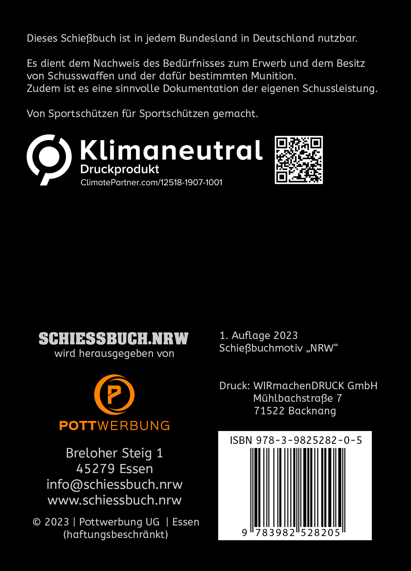 Selbsterklärend und im handlichen A6 Taschenbuchformat auf 32 Seiten erwartet den Sportschützen eine perfekte Aufteilung. Zudem ist diese Version werbefrei, klimaneutral durch Kompensation gedruckt worden und zum Schutz für häufiges Benutzen folienkaschiert worden.