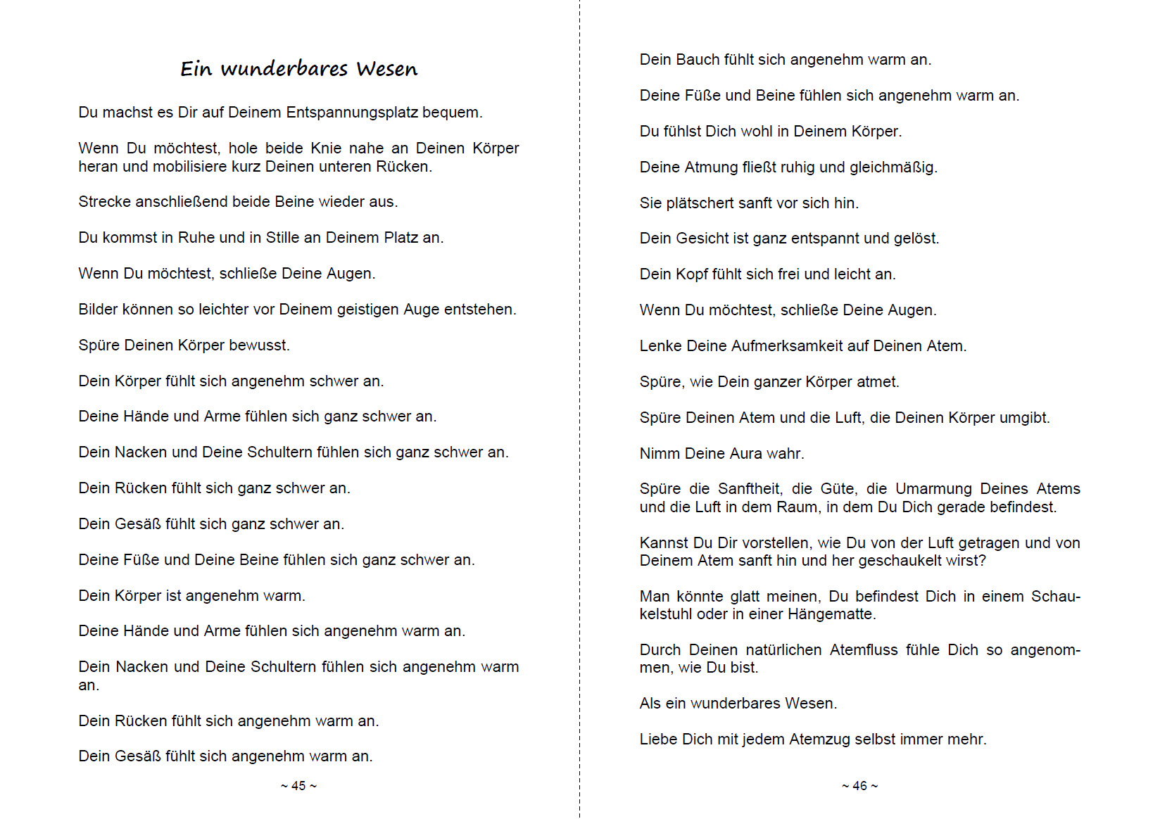 Schaue gern in die Buchvorschau, ob Dir mein Schreibstil zusagt und Dir die Art der Entspannung und Meditationen gefällt.