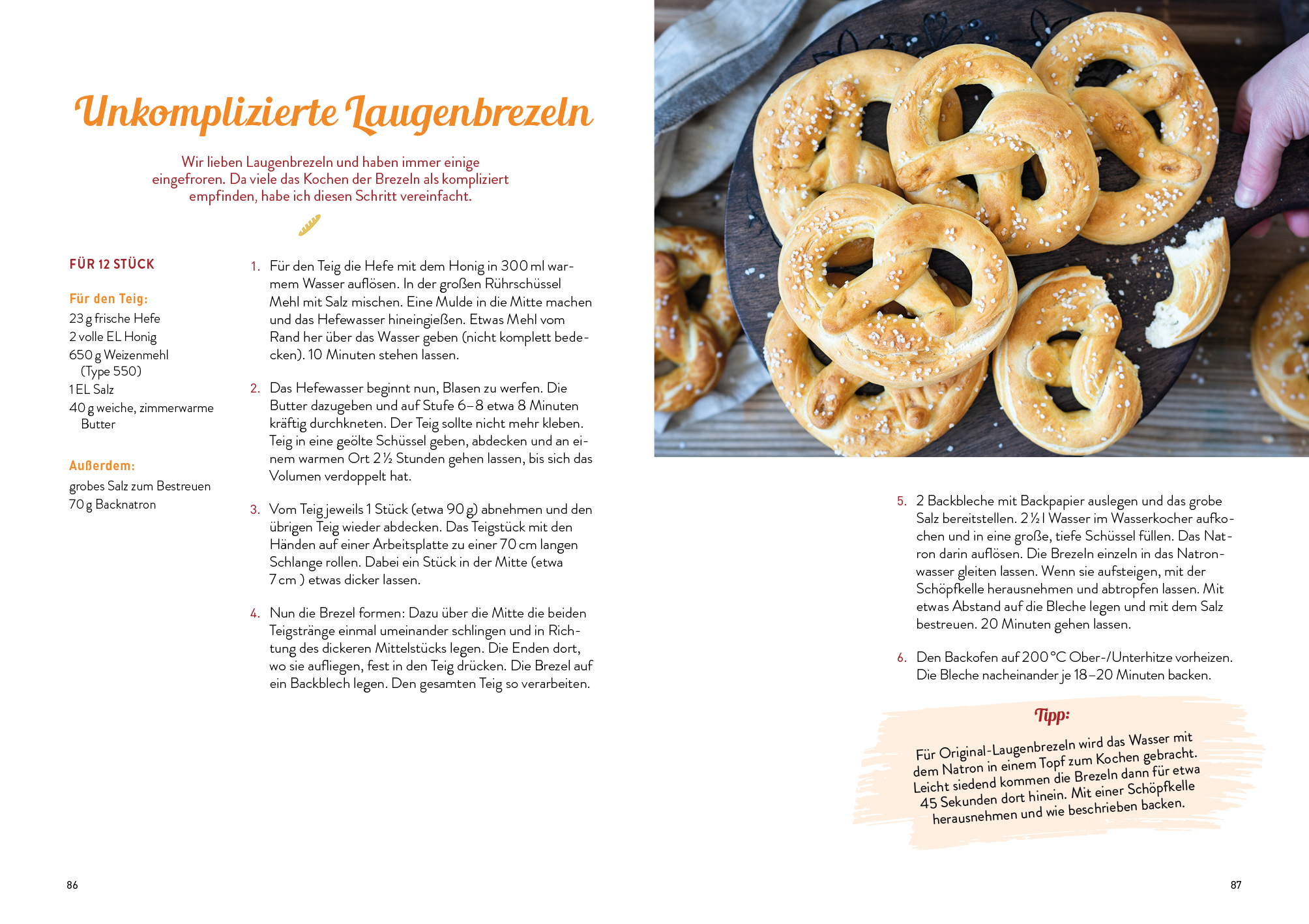 Hast du Lust auf leckeres selbst gebackenes Brot, aber keine Zeit für langes Kneten? Mit der KitchenAid gelingen Sauerteig-, Vollkorn- oder Toastbrot sowie diverses herzhaftes Gebäck wie Brötchen, Ciabatta oder Brezeln ohne viel Aufwand. Dieses Backbuch bietet 50 unkomplizierte Rezepte für klassische Brotsorten oder Baguette, aber auch für ausgefalleneres Gebäck wie Müslistangen und internationale Spezialitäten wie dänisches Milchbrot. Die praktische Küchenmaschine übernimmt dabei das aufwendige Rühren und Kneten des Teigs. So macht Brotbacken Spaß, geht schnell und erfreut Familie und Freund*innen, wenn die selbst gemachten Leckereien frisch und duftend aus dem Ofen kommen. Egal ob knusprige Sonntagswecken zum Frühstück, fluffige Burger Buns für die nächste Party oder saftiges Dinkelbrot zum Abendbrot dieses Backbuch ist dein idealer Begleiter für den Alltag.