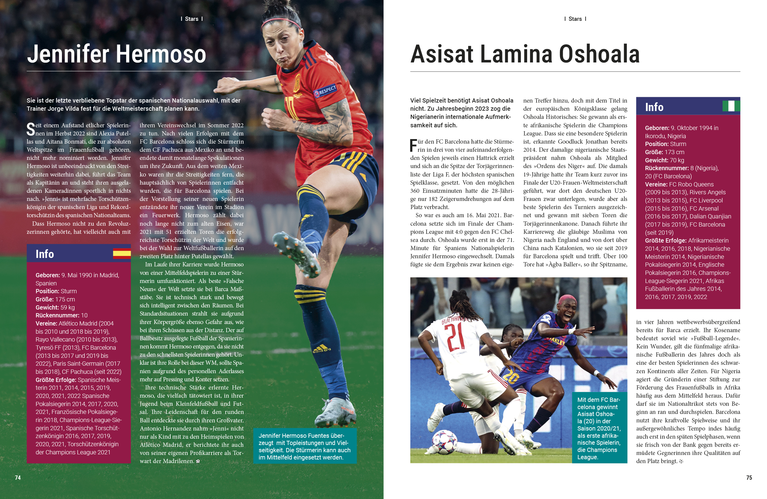 Fußballfans weltweit müssen sich nicht mehr lange gedulden die nächste WM steht schon vor der Tür! Es wird spannend, wie sich das Team der Frauen um Alexandra Popp in Australien und Neuseeland schlagen wird, wer sich als Leistungsträgerin in Szene setzt und welche Länder sich als Konkurrentinnen auf den Titel empfehlen. Dieses Buch stellt die deutsche Nationalmannschaft und alle 32 Teams ausführlich vor. Es porträtiert die Topstars im Weltfußball von Marta über Alex Morgan und Megan Rapinoe bis Alexia Putellas und bietet allerlei Wissenswertes zu den zehn Stadien des Turniers. Neben einem kurzweiligen Ausflug in die WM-Historie machen sensationelle Bilder Lust auf das spektakulärste Sportereignis im Sommer 2023.