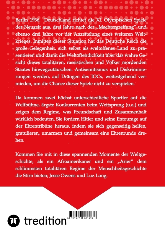 | Schlagworte | Afroamerikaner • "Arier" • Drittes Reich und Olympia • Freundschaft • Hitler • Jesse Owens • Kooperation • Leichtathletik • Luz Long • Olympische Spiele 1936 • Schwarz und Weiß (Ethnien) • Weitsprung • Widerstand gegen Hitler • Zusammenhalt zwischen Erzkonkurrenten |