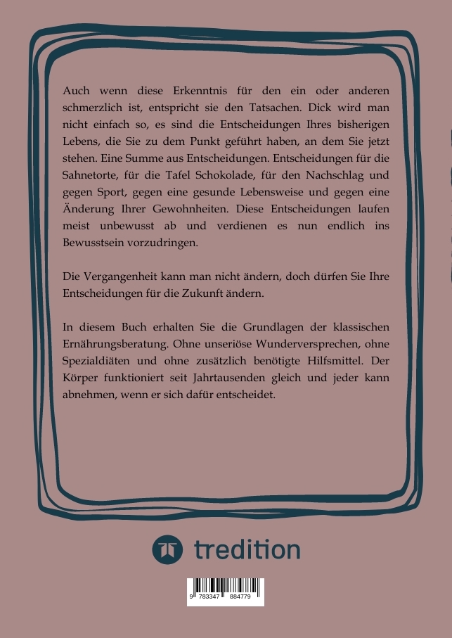 | Schlagworte | Abnehmen • Diät • Entscheidung • Entscheidungen • Ernährungsberatung • Gesundheit • Mentaltraining • Schlank • Unterbewusstsein |