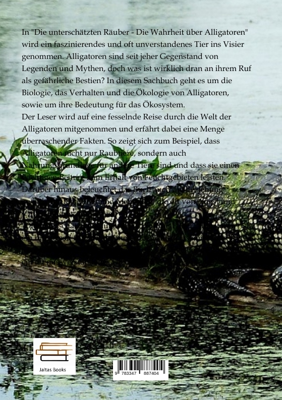 In "Die unterschätzten Räuber - Die Wahrheit über Alligatoren" wird ein faszinierendes und oft unverstandenes Tier ins Visier genommen. Alligatoren sind seit jeher Gegenstand von Legenden und Mythen, doch was ist wirklich dran an ihrem Ruf als gefährliche Bestien? In diesem Sachbuch geht es um die Biologie, das Verhalten und die Ökologie von Alligatoren, sowie um ihre Bedeutung für das Ökosystem.Der Leser wird auf eine fesselnde Reise durch die Welt der Alligatoren mitgenommen und erfährt dabei eine Menge überraschender Fakten. So zeigt sich zum Beispiel, dass Alligatoren nicht nur Raubtiere, sondern auch Nahrungsgrundlage für andere Tiere sind und dass sie einen wichtigen Beitrag zum Erhalt von Feuchtgebieten leisten. Darüber hinaus beleuchtet das Buch auch die Beziehung zwischen Alligatoren und Menschen, die oft von Angst und Unverständnis geprägt ist."Die unterschätzten Räuber - Die Wahrheit über Alligatoren" ist ein must-read für alle, die mehr über dieses faszinierende Tier erfahren möchten und bietet eine einzigartige Perspektive auf ein oft missverstandenes Lebewesen.
