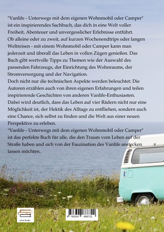 "Vanlife - Unterwegs mit dem eigenen Wohnmobil oder Camper" ist ein inspirierendes Sachbuch, das dich in eine Welt voller Freiheit, Abenteuer und unvergesslicher Erlebnisse entführt. Ob alleine oder zu zweit, auf kurzen Wochenendtrips oder langen Weltreisen - mit einem Wohnmobil oder Camper kann man jederzeit und überall das Leben in vollen Zügen genießen. Das Buch gibt wertvolle Tipps zu Themen wie der Auswahl des passenden Fahrzeugs, der Einrichtung des Wohnraums, der Stromversorgung und der Navigation.Doch nicht nur die technischen Aspekte werden beleuchtet: Die Autoren erzählen auch von ihren eigenen Erfahrungen und teilen inspirierende Geschichten von anderen Vanlife-Enthusiasten. Dabei wird deutlich, dass das Leben auf vier Rädern nicht nur eine Möglichkeit ist, der Hektik des Alltags zu entfliehen, sondern auch eine Chance, sich selbst zu finden und die Welt aus einer neuen Perspektive zu erleben."Vanlife - Unterwegs mit dem eigenen Wohnmobil oder Camper" ist das perfekte Buch für alle, die den Traum vom Leben auf der Straße haben und sich von der Faszination des Vanlife anstecken lassen möchten.