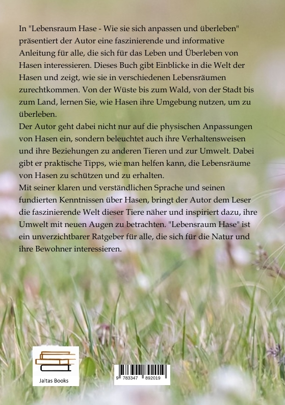 In "Lebensraum Hase - Wie sie sich anpassen und überleben" präsentiert der Autor eine faszinierende und informative Anleitung für alle, die sich für das Leben und Überleben von Hasen interessieren. Dieses Buch gibt Einblicke in die Welt der Hasen und zeigt, wie sie in verschiedenen Lebensräumen zurechtkommen. Von der Wüste bis zum Wald, von der Stadt bis zum Land, lernen Sie, wie Hasen ihre Umgebung nutzen, um zu überleben.Der Autor geht dabei nicht nur auf die physischen Anpassungen von Hasen ein, sondern beleuchtet auch ihre Verhaltensweisen und ihre Beziehungen zu anderen Tieren und zur Umwelt. Dabei gibt er praktische Tipps, wie man helfen kann, die Lebensräume von Hasen zu schützen und zu erhalten.Mit seiner klaren und verständlichen Sprache und seinen fundierten Kenntnissen über Hasen, bringt der Autor dem Leser die faszinierende Welt dieser Tiere näher und inspiriert dazu, ihre Umwelt mit neuen Augen zu betrachten. "Lebensraum Hase" ist ein unverzichtbarer Ratgeber für alle, die sich für die Natur und ihre Bewohner interessieren.