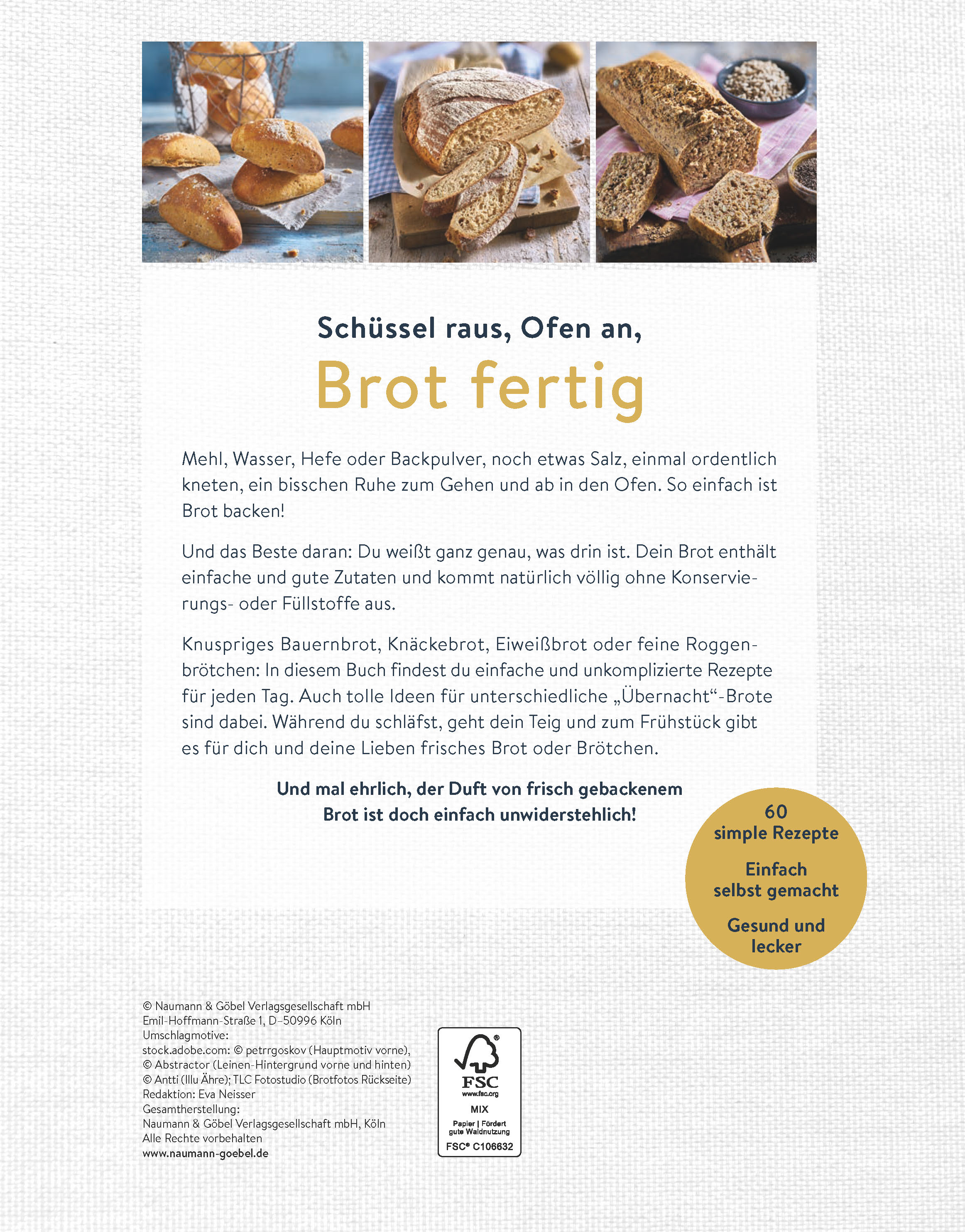 | Schlagworte | Backbuch • backbuch brot • Bauernbrot • _Brot • Brot • Brot Anfänger • Brot backen • Brötchen • Brote ohne Zusatzstoffe • Brot Ideen • Brotrezepte • einfaches brot • Eiweißbrot • Geschenk • gesundes Brot • Hefeteig • hobby-bäcker • Low Carb Brot • Naumann & Göbel Verlag • NGV • Rezepte Brot • Selbst Gemacht • Übernacht-Brot • unter 10 Euro |
