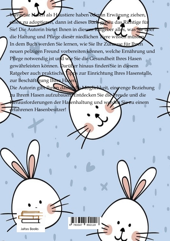 Wenn Sie Hasen als Haustiere haben oder in Erwägung ziehen, einen zu adoptieren, dann ist dieses Buch genau das Richtige für Sie! Die Autorin bietet Ihnen in diesem Ratgeber alles, was Sie über die Haltung und Pflege dieser niedlichen Tiere wissen müssen.In dem Buch werden Sie lernen, wie Sie Ihr Zuhause für Ihren neuen pelzigen Freund vorbereiten können, welche Ernährung und Pflege notwendig ist und wie Sie die Gesundheit Ihres Hasen gewährleisten können. Darüber hinaus finden Sie in diesem Ratgeber auch praktische Tipps zur Einrichtung Ihres Hasenstalls, zur Beschäftigung Ihres Hasen.Die Autorin gibt Ihnen damit die Möglichkeit, eine enge Beziehung zu Ihrem Hasen aufzubauen. Entdecken Sie die Freude und die Herausforderungen der Hasenhaltung und werden Sie zu einem erfahrenen Hasenbesitzer!