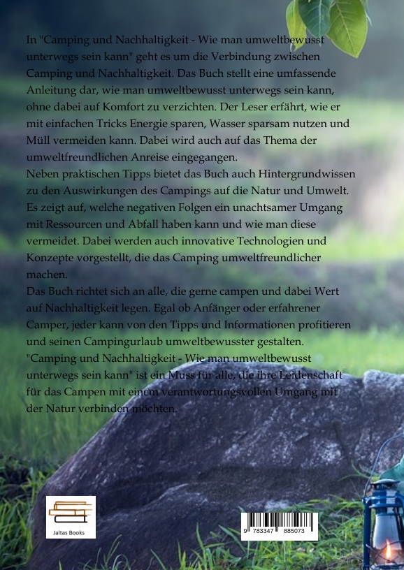 In "Camping und Nachhaltigkeit - Wie man umweltbewusst unterwegs sein kann" geht es um die Verbindung zwischen Camping und Nachhaltigkeit. Das Buch stellt eine umfassende Anleitung dar, wie man umweltbewusst unterwegs sein kann, ohne dabei auf Komfort zu verzichten. Der Leser erfährt, wie er mit einfachen Tricks Energie sparen, Wasser sparsam nutzen und Müll vermeiden kann. Dabei wird auch auf das Thema der umweltfreundlichen Anreise eingegangen.Neben praktischen Tipps bietet das Buch auch Hintergrundwissen zu den Auswirkungen des Campings auf die Natur und Umwelt. Es zeigt auf, welche negativen Folgen ein unachtsamer Umgang mit Ressourcen und Abfall haben kann und wie man diese vermeidet. Dabei werden auch innovative Technologien und Konzepte vorgestellt, die das Camping umweltfreundlicher machen.Das Buch richtet sich an alle, die gerne campen und dabei Wert auf Nachhaltigkeit legen. Egal ob Anfänger oder erfahrener Camper, jeder kann von den Tipps und Informationen profitieren und seinen Campingurlaub umweltbewusster gestalten. "Camping und Nachhaltigkeit - Wie man umweltbewusst unterwegs sein kann" ist ein Muss für alle, die ihre Leidenschaft für das Campen mit einem verantwortungsvollen Umgang mit der Natur verbinden möchten.
