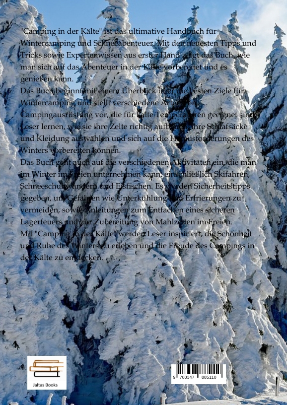 "Camping in der Kälte" ist das ultimative Handbuch für Wintercamping und Schneeabenteuer. Mit den neuesten Tipps und Tricks sowie Expertenwissen aus erster Hand zeigt das Buch, wie man sich auf das Abenteuer in der Kälte vorbereitet und es genießen kann.Das Buch beginnt mit einem Überblick über die besten Ziele für Wintercamping und stellt verschiedene Arten von Campingausrüstung vor, die für kalte Temperaturen geeignet sind. Leser lernen, wie sie ihre Zelte richtig aufbauen, ihre Schlafsäcke und Kleidung auswählen und sich auf die Herausforderungen des Winters vorbereiten können.Das Buch geht auch auf die verschiedenen Aktivitäten ein, die man im Winter im Freien unternehmen kann, einschließlich Skifahren, Schneeschuhwandern und Eisfischen. Es werden Sicherheitstipps gegeben, um Gefahren wie Unterkühlung und Erfrierungen zu vermeiden, sowie Anleitungen zum Entfachen eines sicheren Lagerfeuers und zur Zubereitung von Mahlzeiten im Freien.Mit "Camping in der Kälte" werden Leser inspiriert, die Schönheit und Ruhe des Winters zu erleben und die Freude des Campings in der Kälte zu entdecken.