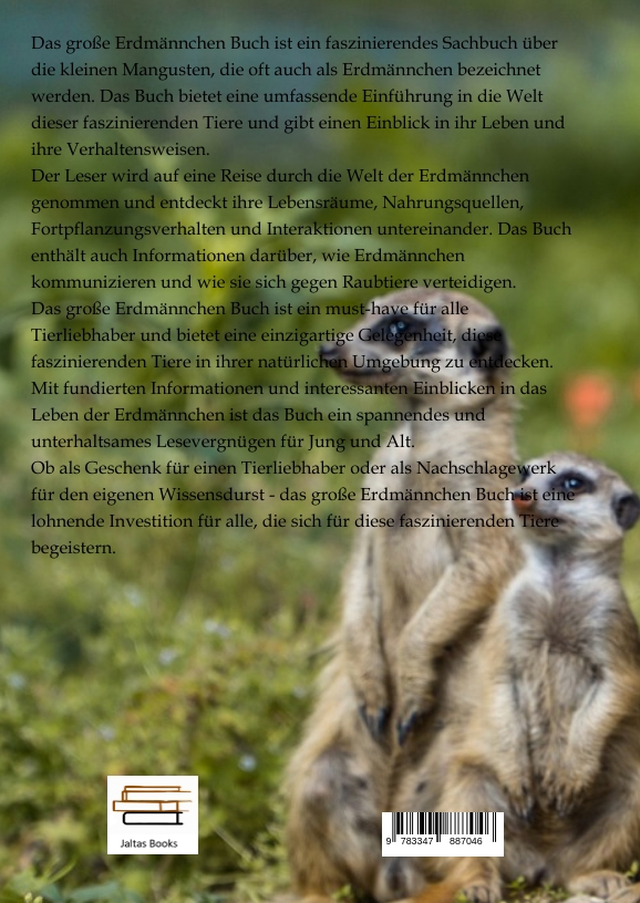Das große Erdmännchen Buch ist ein faszinierendes Sachbuch über die kleinen Mangusten, die oft auch als Erdmännchen bezeichnet werden. Das Buch bietet eine umfassende Einführung in die Welt dieser faszinierenden Tiere und gibt einen Einblick in ihr Leben und ihre Verhaltensweisen.Der Leser wird auf eine Reise durch die Welt der Erdmännchen genommen und entdeckt ihre Lebensräume, Nahrungsquellen, Fortpflanzungsverhalten und Interaktionen untereinander. Das Buch enthält auch Informationen darüber, wie Erdmännchen kommunizieren und wie sie sich gegen Raubtiere verteidigen.Das große Erdmännchen Buch ist ein must-have für alle Tierliebhaber und bietet eine einzigartige Gelegenheit, diese faszinierenden Tiere in ihrer natürlichen Umgebung zu entdecken. Mit fundierten Informationen und interessanten Einblicken in das Leben der Erdmännchen ist das Buch ein spannendes und unterhaltsames Lesevergnügen für Jung und Alt.Ob als Geschenk für einen Tierliebhaber oder als Nachschlagewerk für den eigenen Wissensdurst - das große Erdmännchen Buch ist eine lohnende Investition für alle, die sich für diese faszinierenden Tiere begeistern.