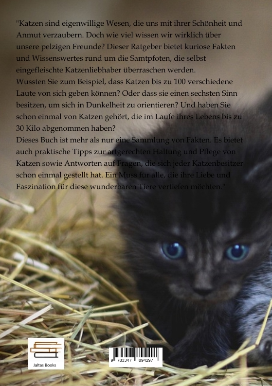 "Katzen sind eigenwillige Wesen, die uns mit ihrer Schönheit und Anmut verzaubern. Doch wie viel wissen wir wirklich über unsere pelzigen Freunde? Dieser Ratgeber bietet kuriose Fakten und Wissenswertes rund um die Samtpfoten, die selbst eingefleischte Katzenliebhaber überraschen werden.Wussten Sie zum Beispiel, dass Katzen bis zu 100 verschiedene Laute von sich geben können? Oder dass sie einen sechsten Sinn besitzen, um sich in Dunkelheit zu orientieren? Und haben Sie schon einmal von Katzen gehört, die im Laufe ihres Lebens bis zu 30 Kilo abgenommen haben?Dieses Buch ist mehr als nur eine Sammlung von Fakten. Es bietet auch praktische Tipps zur artgerechten Haltung und Pflege von Katzen sowie Antworten auf Fragen, die sich jeder Katzenbesitzer schon einmal gestellt hat. Ein Muss für alle, die ihre Liebe und Faszination für diese wunderbaren Tiere vertiefen möchten."