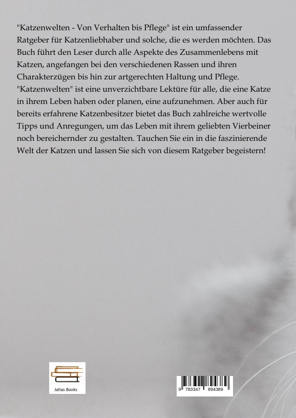 "Katzenwelten - Von Verhalten bis Pflege" ist ein umfassender Ratgeber für Katzenliebhaber und solche, die es werden möchten. Das Buch führt den Leser durch alle Aspekte des Zusammenlebens mit Katzen, angefangen bei den verschiedenen Rassen und ihren Charakterzügen bis hin zur artgerechten Haltung und Pflege."Katzenwelten" ist eine unverzichtbare Lektüre für alle, die eine Katze in ihrem Leben haben oder planen, eine aufzunehmen. Aber auch für bereits erfahrene Katzenbesitzer bietet das Buch zahlreiche wertvolle Tipps und Anregungen, um das Leben mit ihrem geliebten Vierbeiner noch bereichernder zu gestalten. Tauchen Sie ein in die faszinierende Welt der Katzen und lassen Sie sich von diesem Ratgeber begeistern!