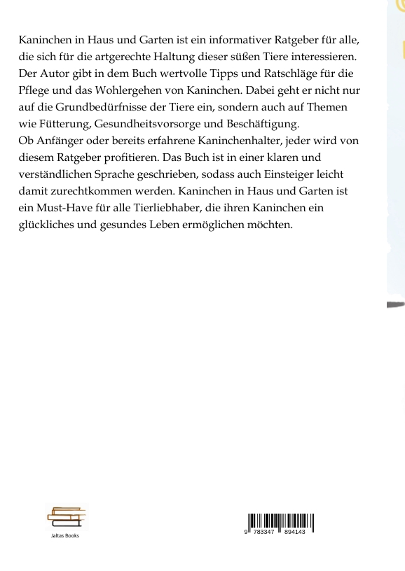Kaninchen in Haus und Garten ist ein informativer Ratgeber für alle, die sich für die artgerechte Haltung dieser süßen Tiere interessieren. Der Autor gibt in dem Buch wertvolle Tipps und Ratschläge für die Pflege und das Wohlergehen von Kaninchen. Dabei geht er nicht nur auf die Grundbedürfnisse der Tiere ein, sondern auch auf Themen wie Fütterung, Gesundheitsvorsorge und Beschäftigung.Ob Anfänger oder bereits erfahrene Kaninchenhalter, jeder wird von diesem Ratgeber profitieren. Das Buch ist in einer klaren und verständlichen Sprache geschrieben, sodass auch Einsteiger leicht damit zurechtkommen werden. Kaninchen in Haus und Garten ist ein Must-Have für alle Tierliebhaber, die ihren Kaninchen ein glückliches und gesundes Leben ermöglichen möchten.