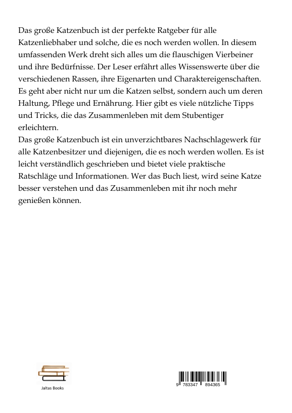 Das große Katzenbuch ist der perfekte Ratgeber für alle Katzenliebhaber und solche, die es noch werden wollen. In diesem umfassenden Werk dreht sich alles um die flauschigen Vierbeiner und ihre Bedürfnisse. Der Leser erfährt alles Wissenswerte über die verschiedenen Rassen, ihre Eigenarten und Charaktereigenschaften. Es geht aber nicht nur um die Katzen selbst, sondern auch um deren Haltung, Pflege und Ernährung. Hier gibt es viele nützliche Tipps und Tricks, die das Zusammenleben mit dem Stubentiger erleichtern.Das große Katzenbuch ist ein unverzichtbares Nachschlagewerk für alle Katzenbesitzer und diejenigen, die es noch werden wollen. Es ist leicht verständlich geschrieben und bietet viele praktische Ratschläge und Informationen. Wer das Buch liest, wird seine Katze besser verstehen und das Zusammenleben mit ihr noch mehr genießen können.