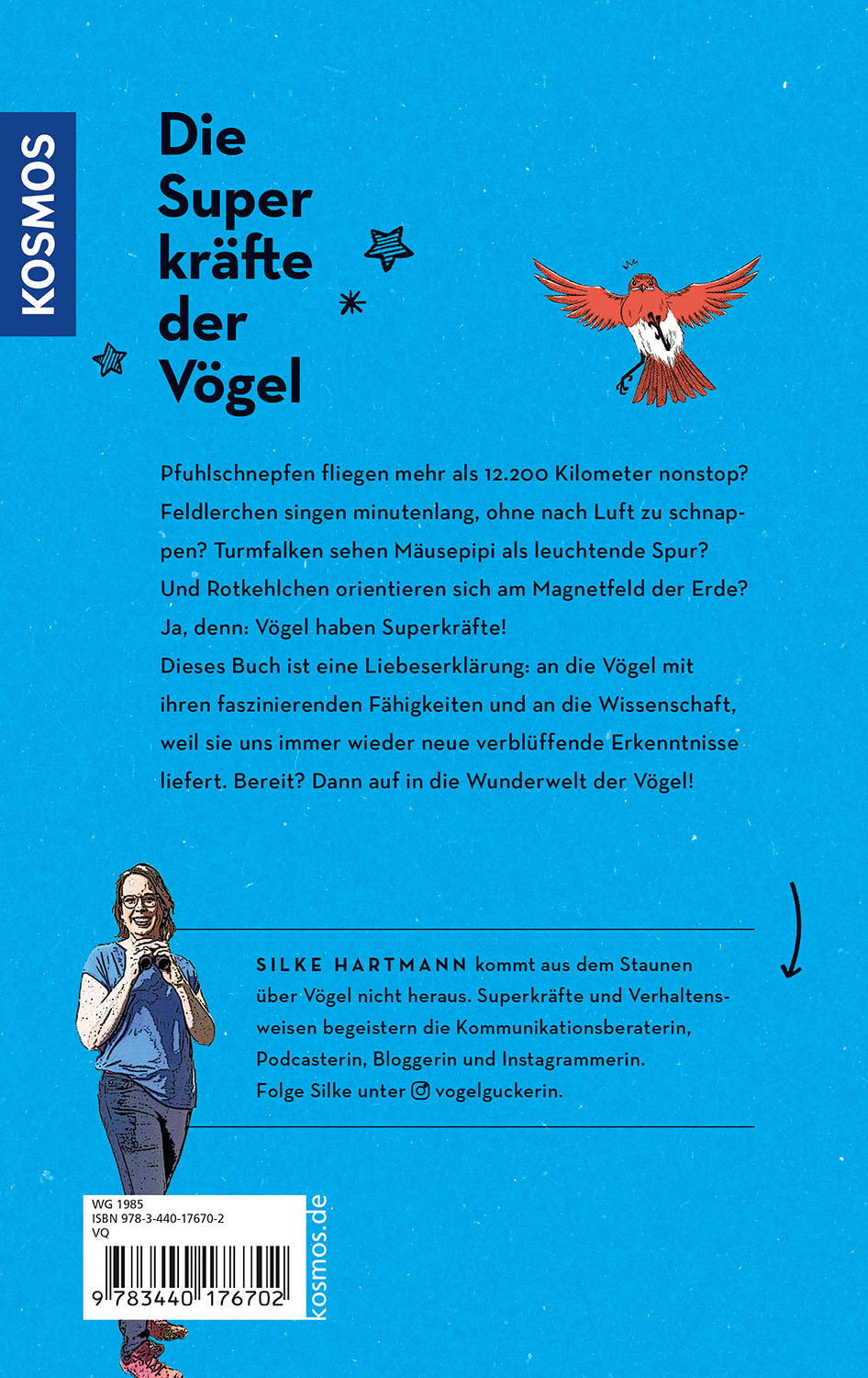 Wer dieses Buch liest, wird Amsel, Spatz & Co. garantiert mit anderen Augen sehen! Denn Vögel sind wahre Wunderwesen, deren Superkräfte bisher viel zu oft übersehen wurden. Grund genug also, die Fähigkeiten der Luftakrobaten und Sangeskünstler einmal genauer unter die Lupe zu nehmen "Die Vogelguckerin" Silke Hartmann tut das in diesem Buch und hat dafür mit Deutschlands führenden Vogelforscherinnen über die erstaunlichen Fähigkeiten von Vögeln gesprochen. Gleichzeitig löst sie das Klischee vom alten, männlichen Ornithologen auf und zeigt: Vogelkunde geht auch jung, modern und weiblich! Vom Fliegen übers Singen bis hin zum Schmecken und zur Intelligenz - die Superkräfte von Vögeln sind beeindruckend und werden den Leserinnen und Lesern mit Sicherheit ein staunendes "Wow!" entlocken.