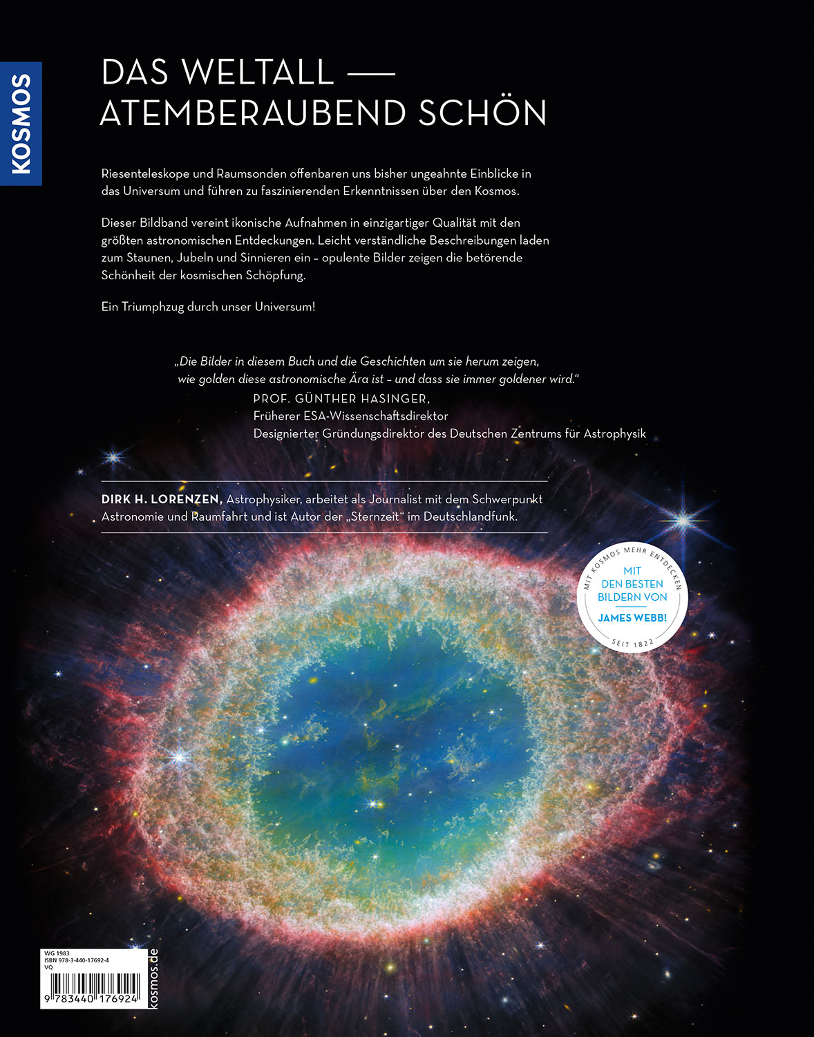 | Schlagworte | Bildband Astronomie • Einstein • Galaxis • Geschenkbuch • Hawking • HST • Hubble • James Webb • JWST • Kosmologie • Kosmos • Planet • Schwarzes Loch • Schwerkraft • Sonne • Stern • Sternbild • Teleskop • Universum • Urknall • Weltall • Weltraum |