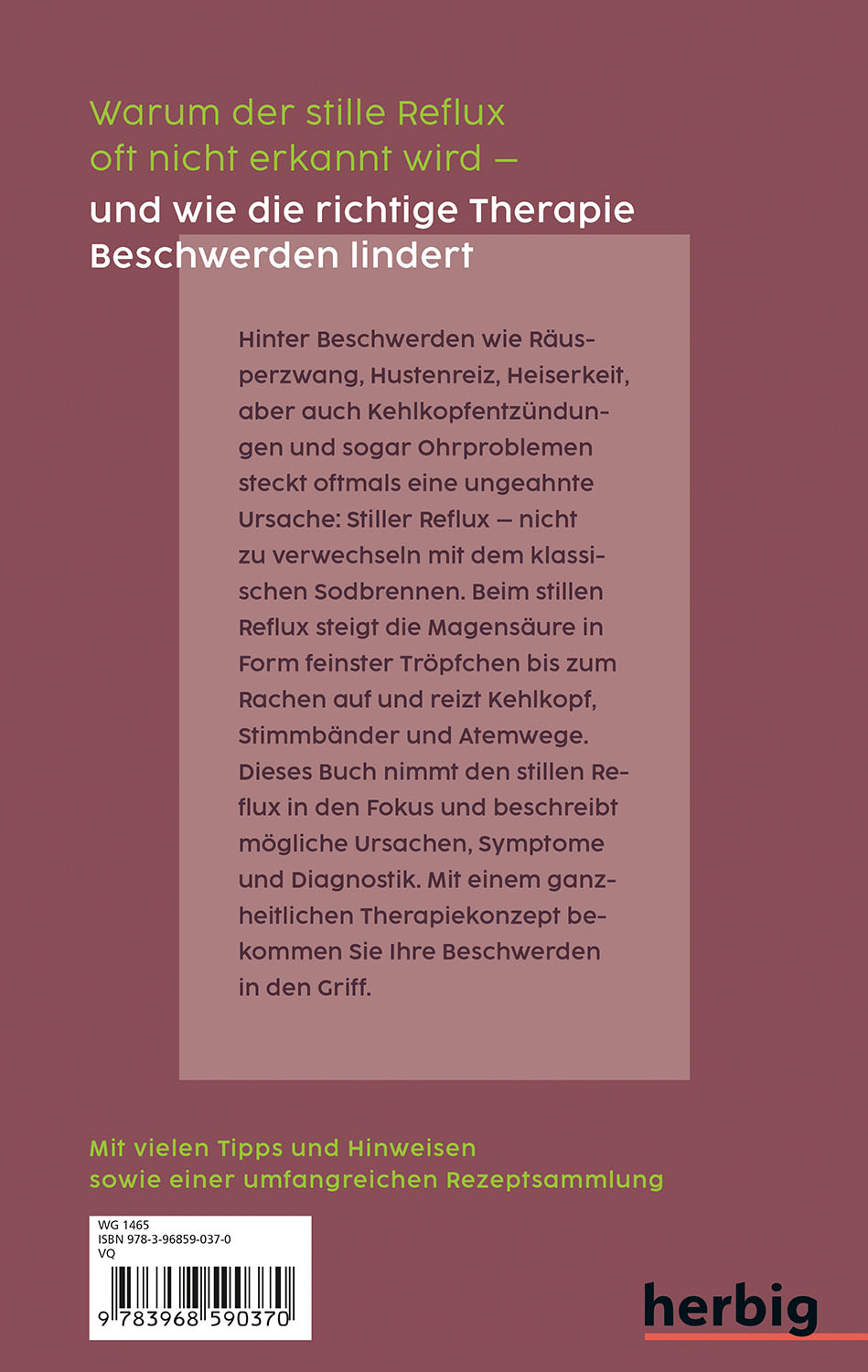 Hinter Beschwerden wie Räusperzwang, Hustenreiz, Heiserkeit steckt oftmals eine ungeahnte Ursache: Stiller Reflux.Dieses Buch nimmt erstmals den Stillen Reflux - umgangssprachlich auch Sodbrennen genannt - in den Fokus, beschreibt Ursachen, Symptome und Therapiemöglichkeiten und hilft Betroffenen dabei, das unangenehme Aufstoßen in den Griff zu bekommen.