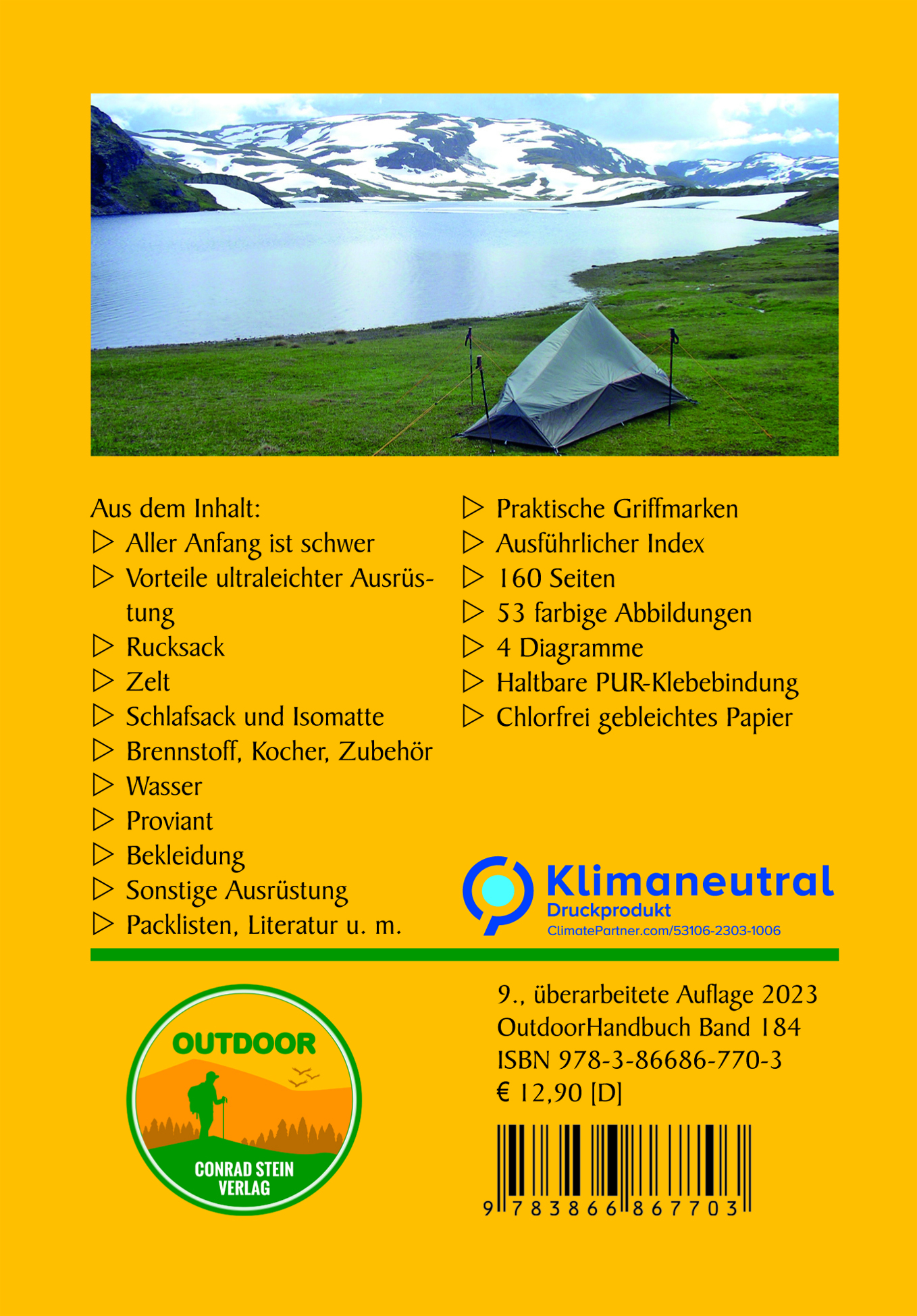 Aller Anfang ist schwer, Vorteile ultraleichter Ausrüstung, Tipps für den Umstieg, Rucksack, Zelt, Schlafsack, Kocher und Brennstoff, Wasser, Proviant, Bekleidung, sonstige Ausrüstung, Packlisten, Bezugsquellen, Literatur, Internet.