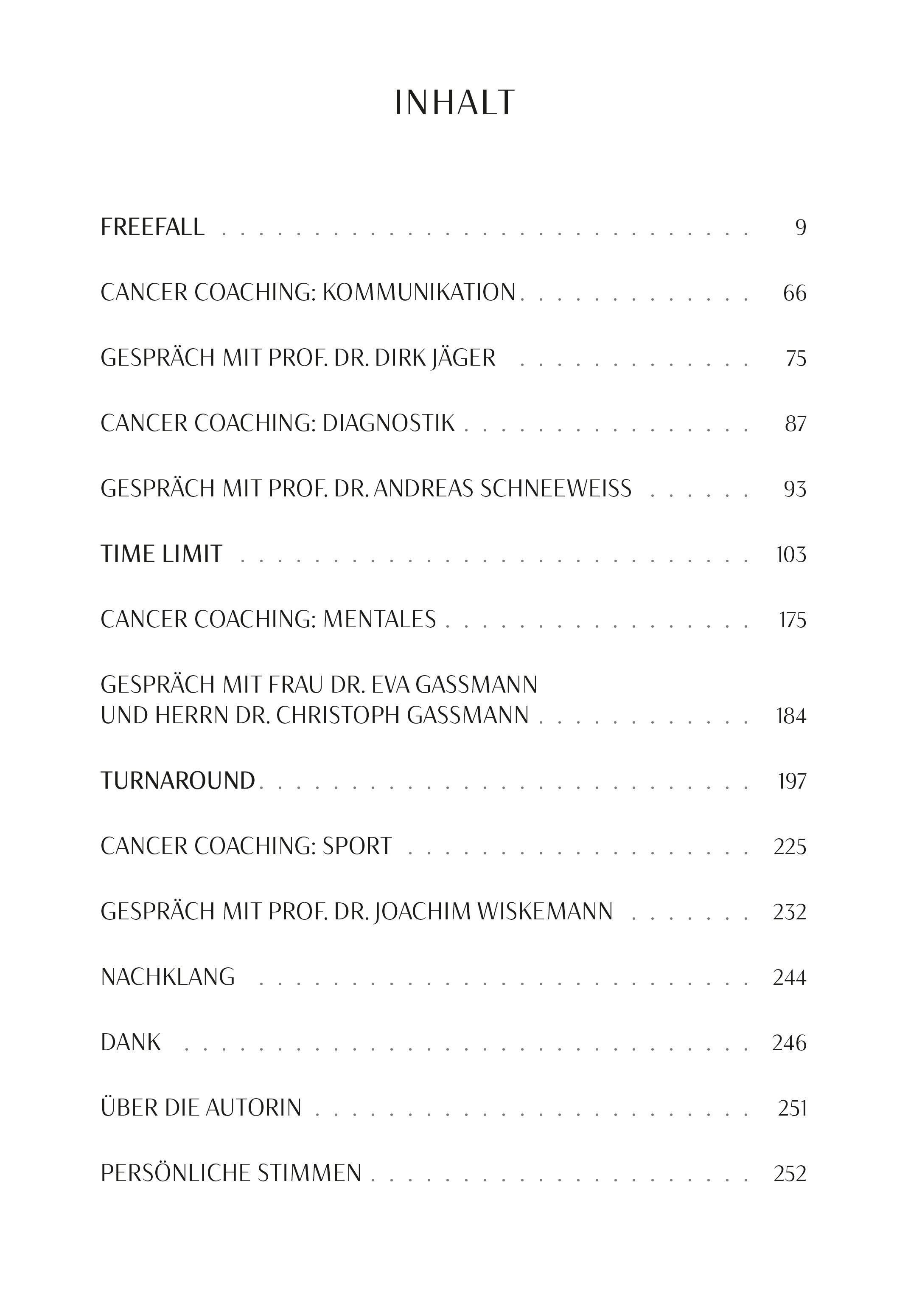 In ihrem Buch "Cancer Coaching" beschreibt sie nicht nur ihren erfolgreichen Kampf gegen die Krankheit, sondern teilt auch, was ihr geholfen hat, und unterstützt Betroffene in einer Zeit der Überforderung und Fremdbestimmung durch eine tödliche Krankheit, zu selbstbestimmten und stabilen Patienten zu werden.