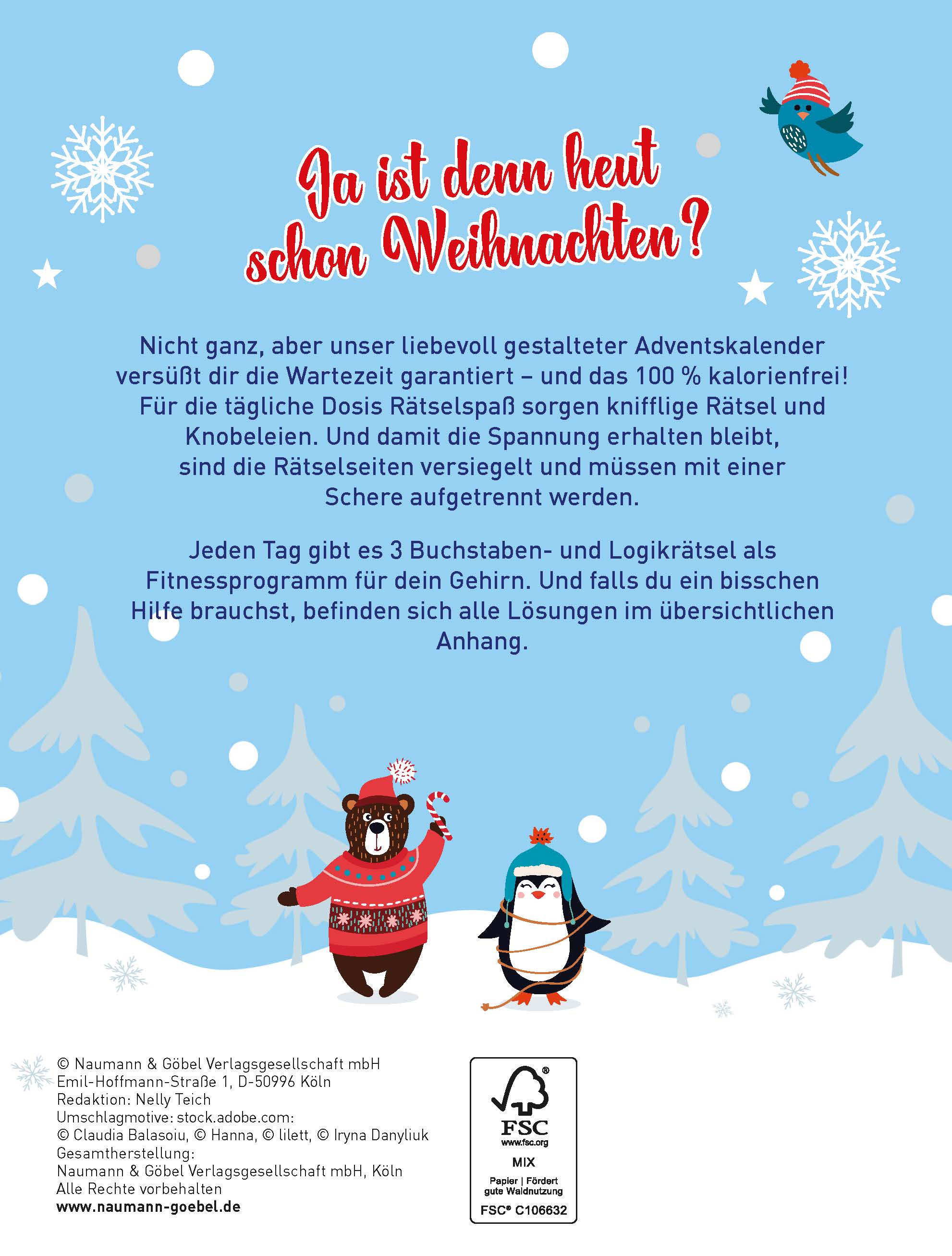 | Schlagworte | Advent • Adventskalender • _Adventskalender 2023 • Adventskalender 2023 • Adventskalender 2024 • Adventskalender Erwachsene • Adventskalender unter 10 Euro • Adventstürchen • Buch • Buchstabenrätsel • Gedächtnistraining • Gedächtnisübung • Gehirnjogging • Geschenk • Geschenk für Rätselfans • geschenk unter 10 euro • Logikrätsel • NGV • Rätsel • Rätsel-Adventskalender • Rätselbuch • rätselbuch erwachsene • Sudoku-Adventskalender |