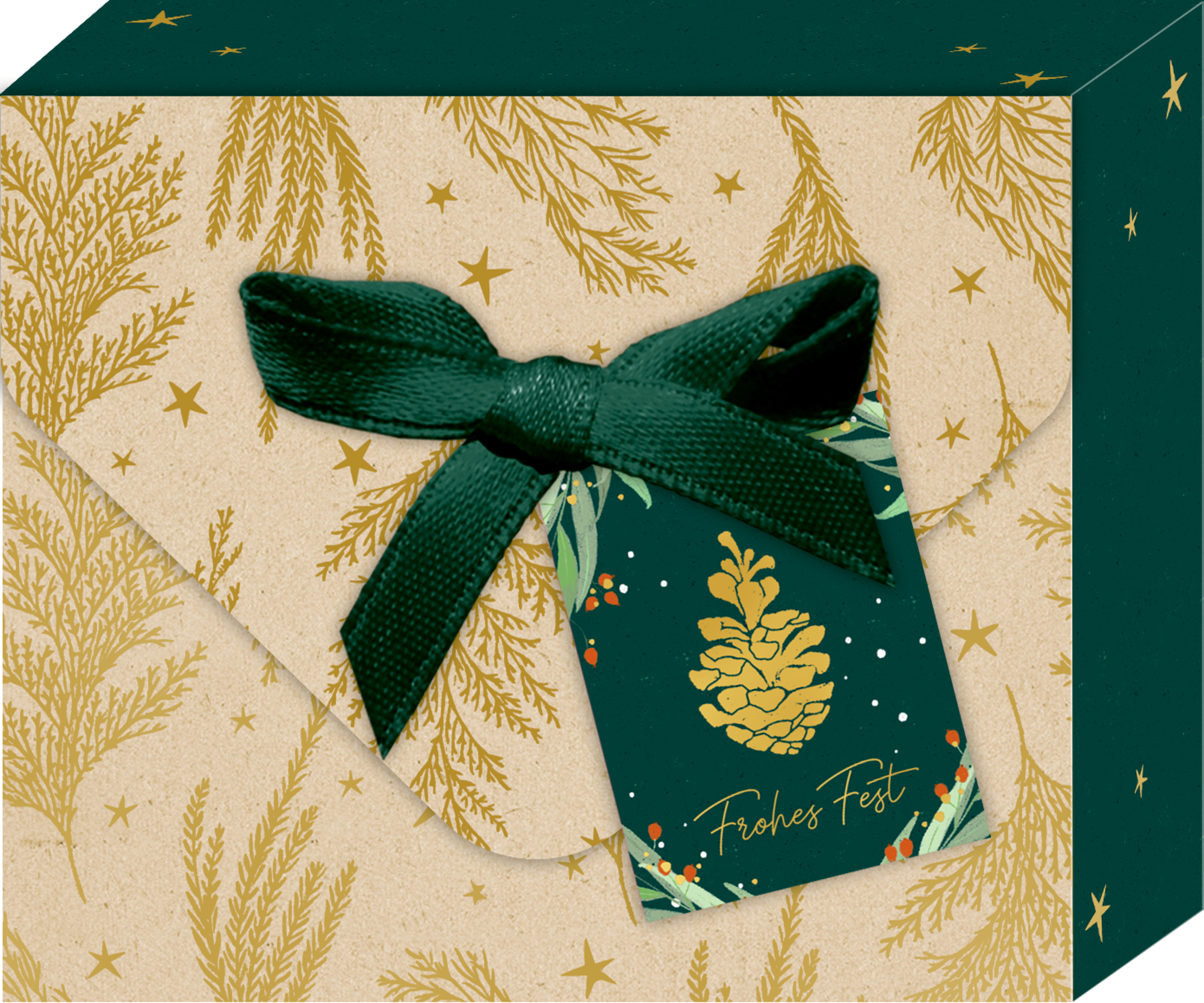 Diese hochwertige Schachtel mit opulenter Geschenkschleife und Folienveredelung kann Wünsche zu Weihnachten erfüllen. In der Schachtel ist Platz für ein Geld- oder Gutscheingeschenk oder eine persönliche Widmung.